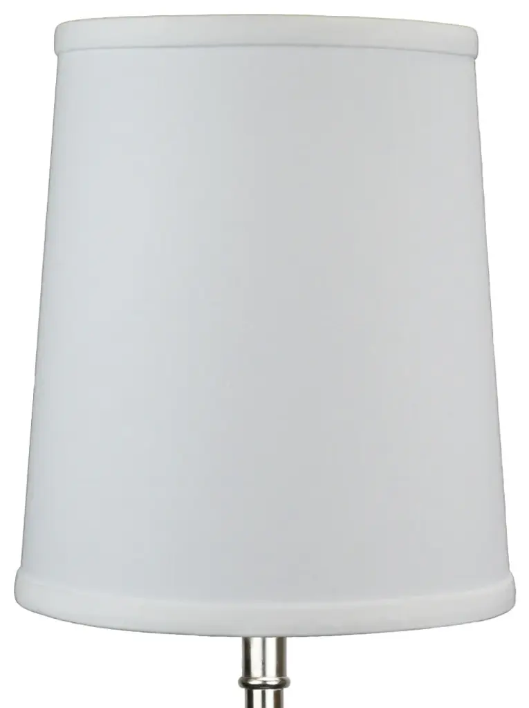 This Fenchel Shades lamp shade has a top diameter of 5 inches, a bottom diameter of 6 inches, and a slant height of 7 inches. The vertical height of this shade is about 7 inches. The attachment type is a Flame clip with nickel finish Flame clips are most commonly used on standard flame-style bulbs often found on chandelier fixtures. This Product is proudly made in the USA with US materials.• First photo is to reference the style of shade, Second photo is the COLOR of the shade•