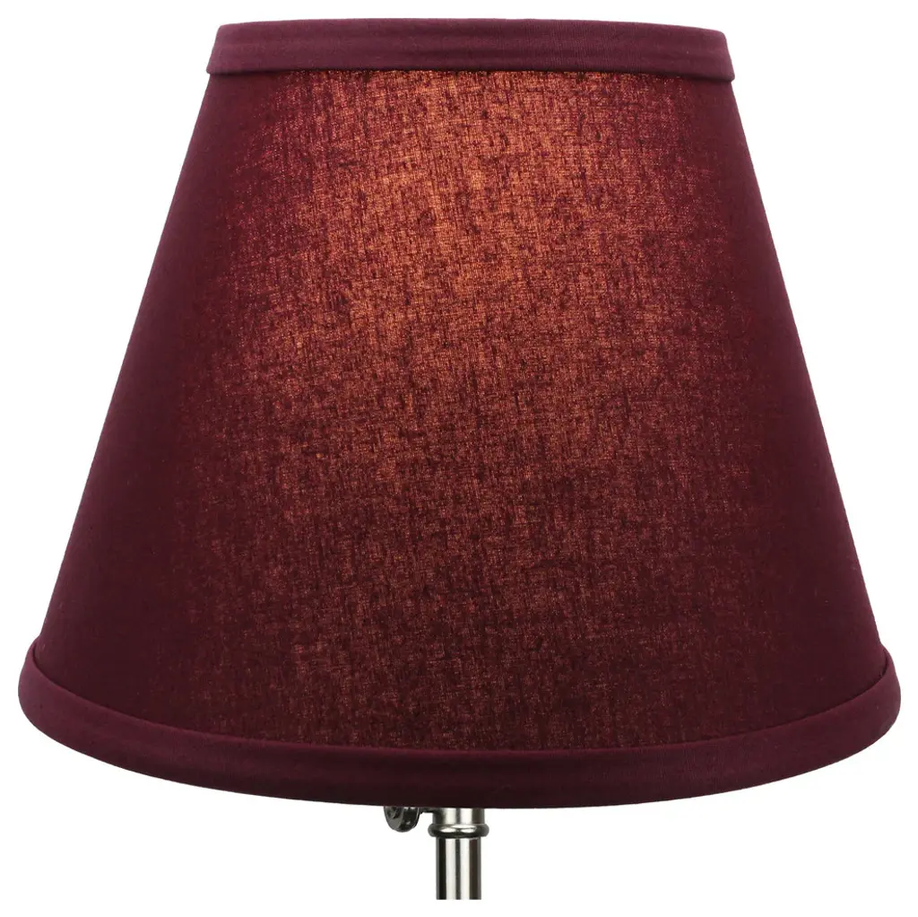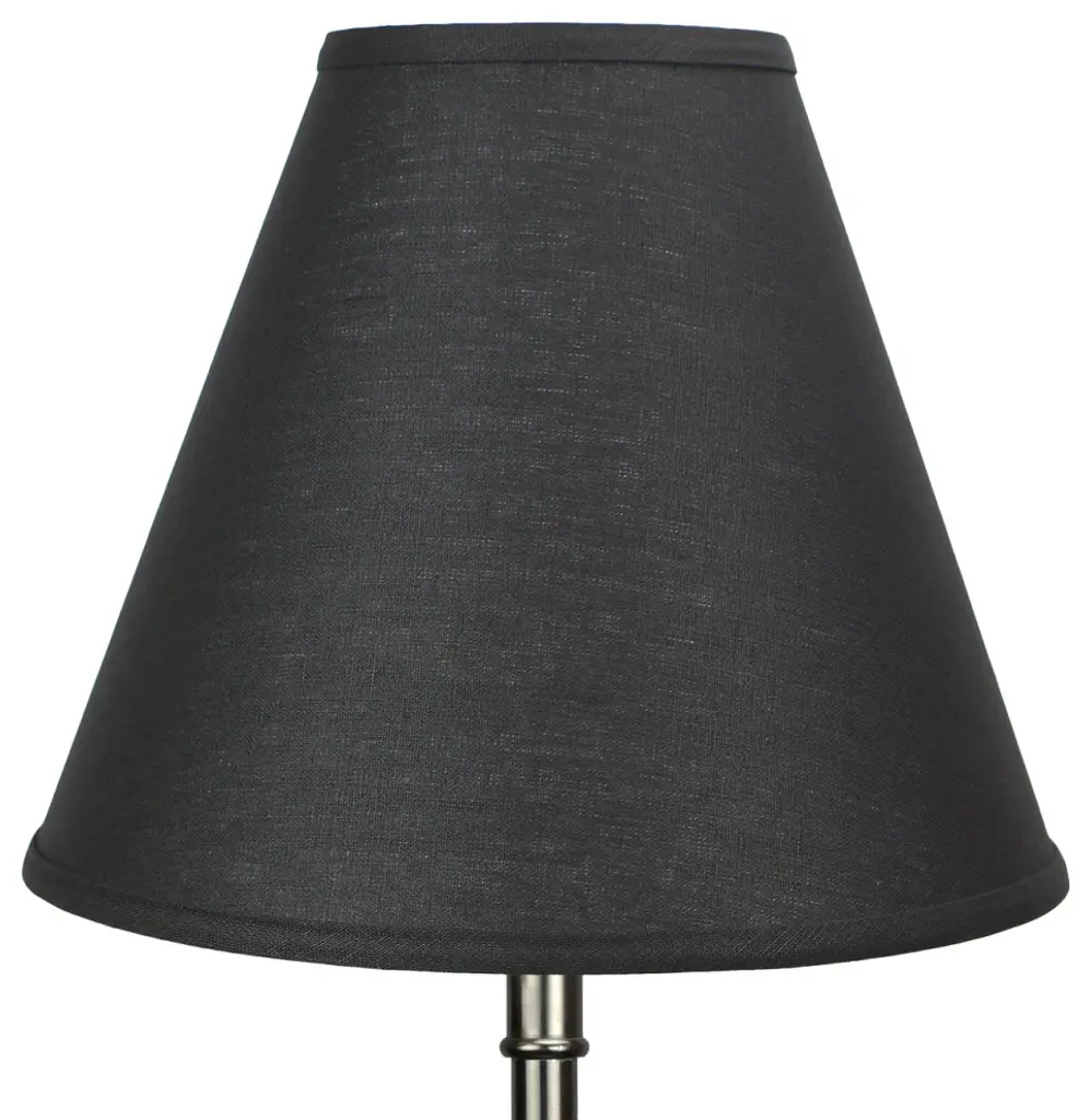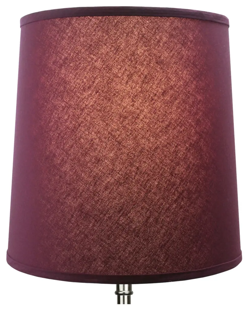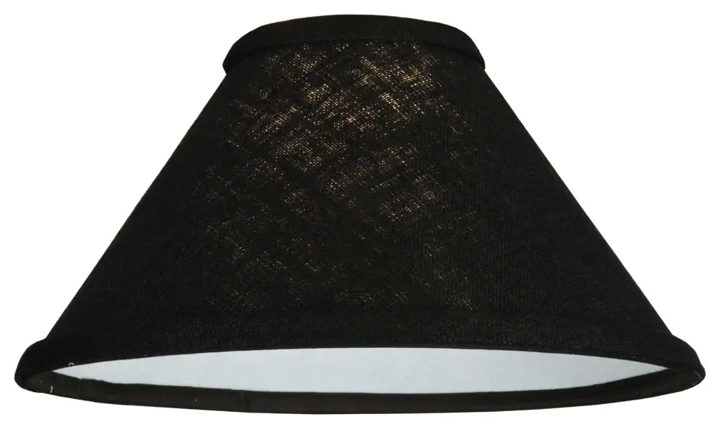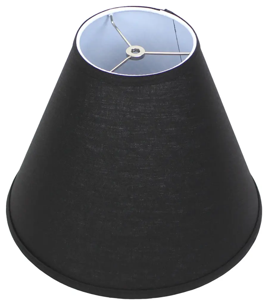 This lamp shade is made with pride in the USA, and construction does not begin until you place your order. This shade measures 6" Top Diameter x 14" Bottom Diameter x 12" Slant Height. The shade is equipped with a Nickel Finish Washer fitter. This is the most common fitter type. It consists of a small washer with an inner diameter hole size of approximately 1/2". The washer generally rests on the top of a metal harp above the light bulb and is held in place by a screw-on finial. The outside of the lamp shade has a fabric covering. The inside is a white styrene (white plastic). The top and bottom of this item is adorned with a 1/2" band of single fold lampshade trim. The trim is the same color as the covering.