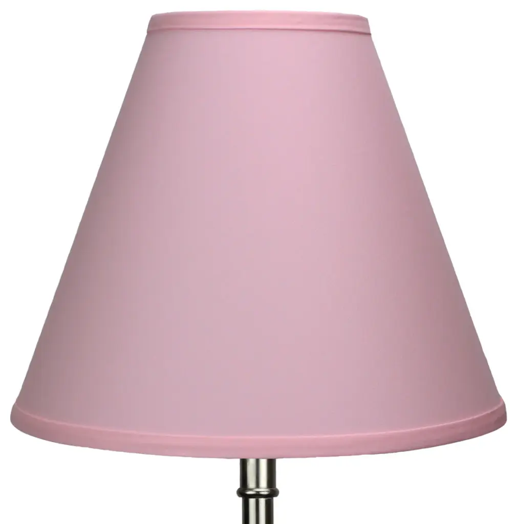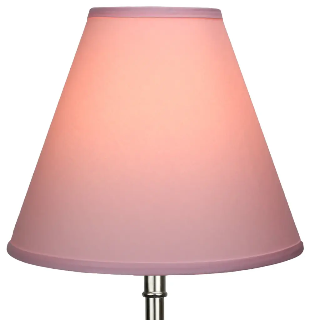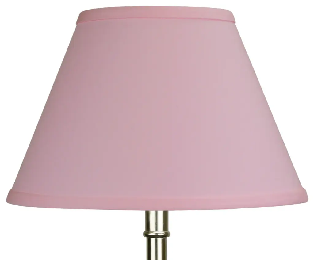 This lamp shade is made with pride in the USA, and construction does not begin until you place your order. This shade measures 6" Top Diameter x 14" Bottom Diameter x 12" Slant Height. The shade is equipped with a Nickel Finish Washer fitter. This is the most common fitter type. It consists of a small washer with an inner diameter hole size of approximately 1/2". The washer generally rests on the top of a metal harp above the light bulb and is held in place by a screw-on finial. The outside of the lamp shade has a fabric covering. The inside is a white styrene (white plastic). The top and bottom of this item is adorned with a 1/2" band of single fold lampshade trim. The trim is the same color as the covering.
