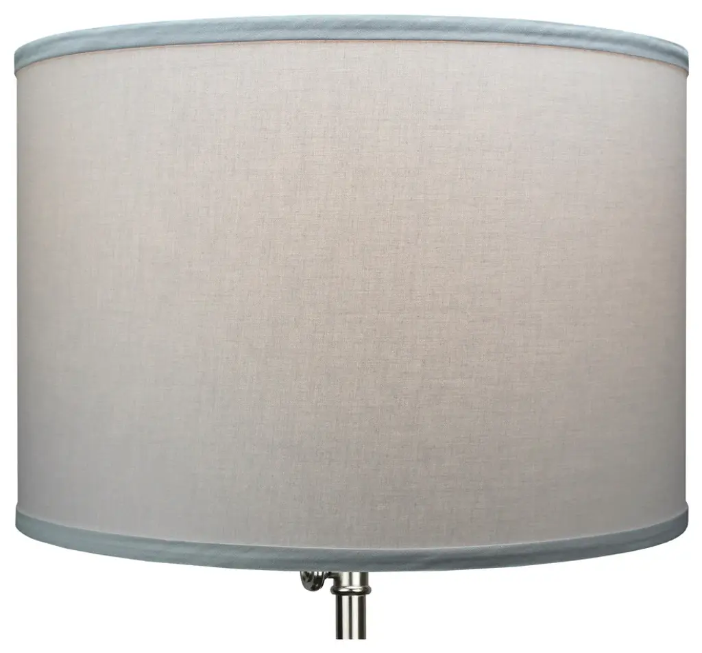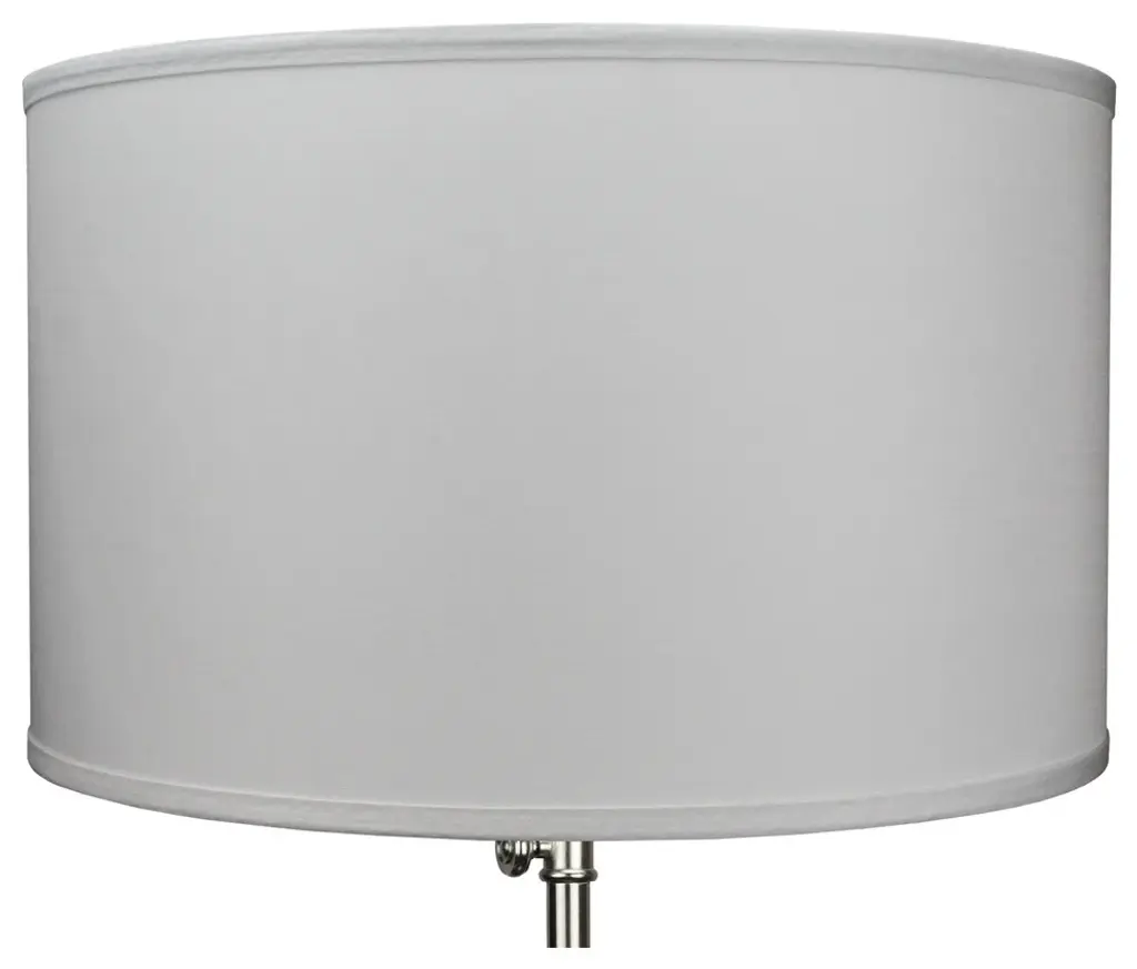 This lamp shade is made with pride in the USA, and construction does not begin until you place your order. This shade measures 10" Top Diameter x 10" Bottom Diameter x 10" Height. This shade is equipped with a nickel finish washer fitter. This is the most common fitter type. It consists of a small washer with an inner diameter hole size of approximately 1/2". The washer generally rests on the top of a metal harp above the light bulb and is held in place by a screw-on finial. The outside of the lamp shade has a fabric covering. The inside is a white styrene (white plastic). The top and bottom of this item is adorned with a 1/2" band of single fold lampshade trim. The trim is the same color as the covering.