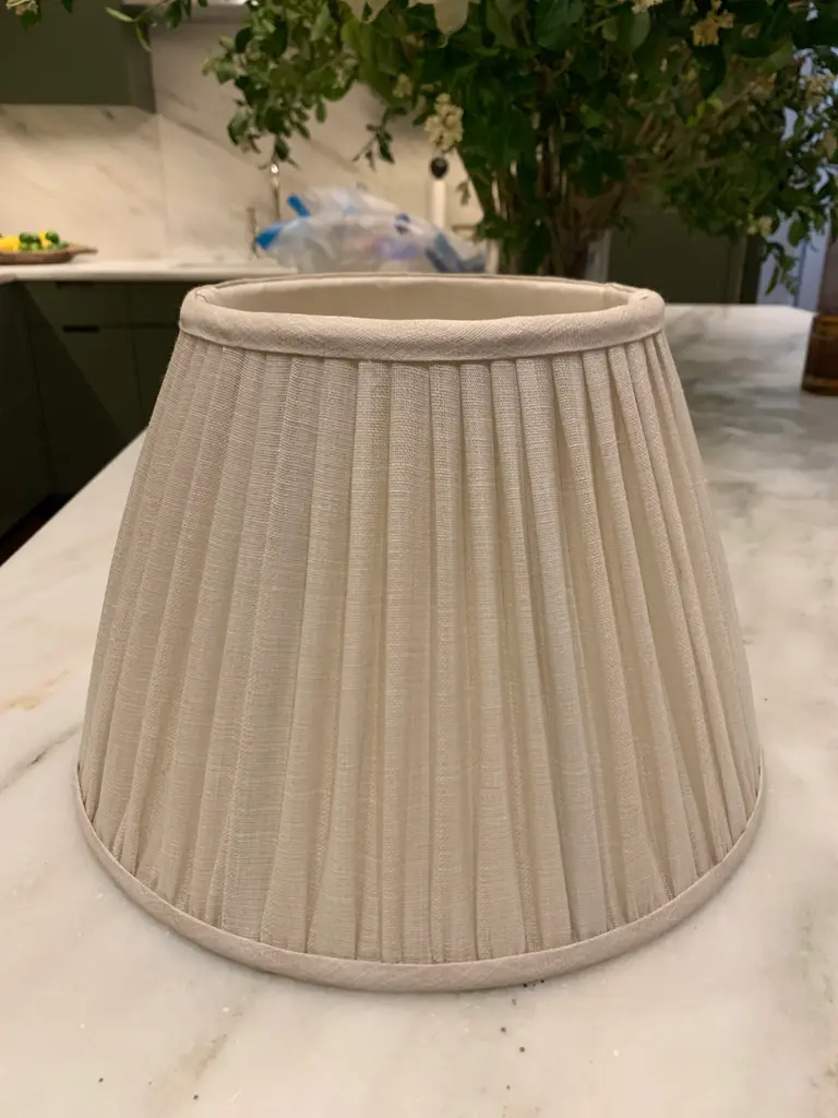 12 Inch Gathered Bedwyn Lampshade in Cream Moire Linen Sheer. E26 gimbal fitting.