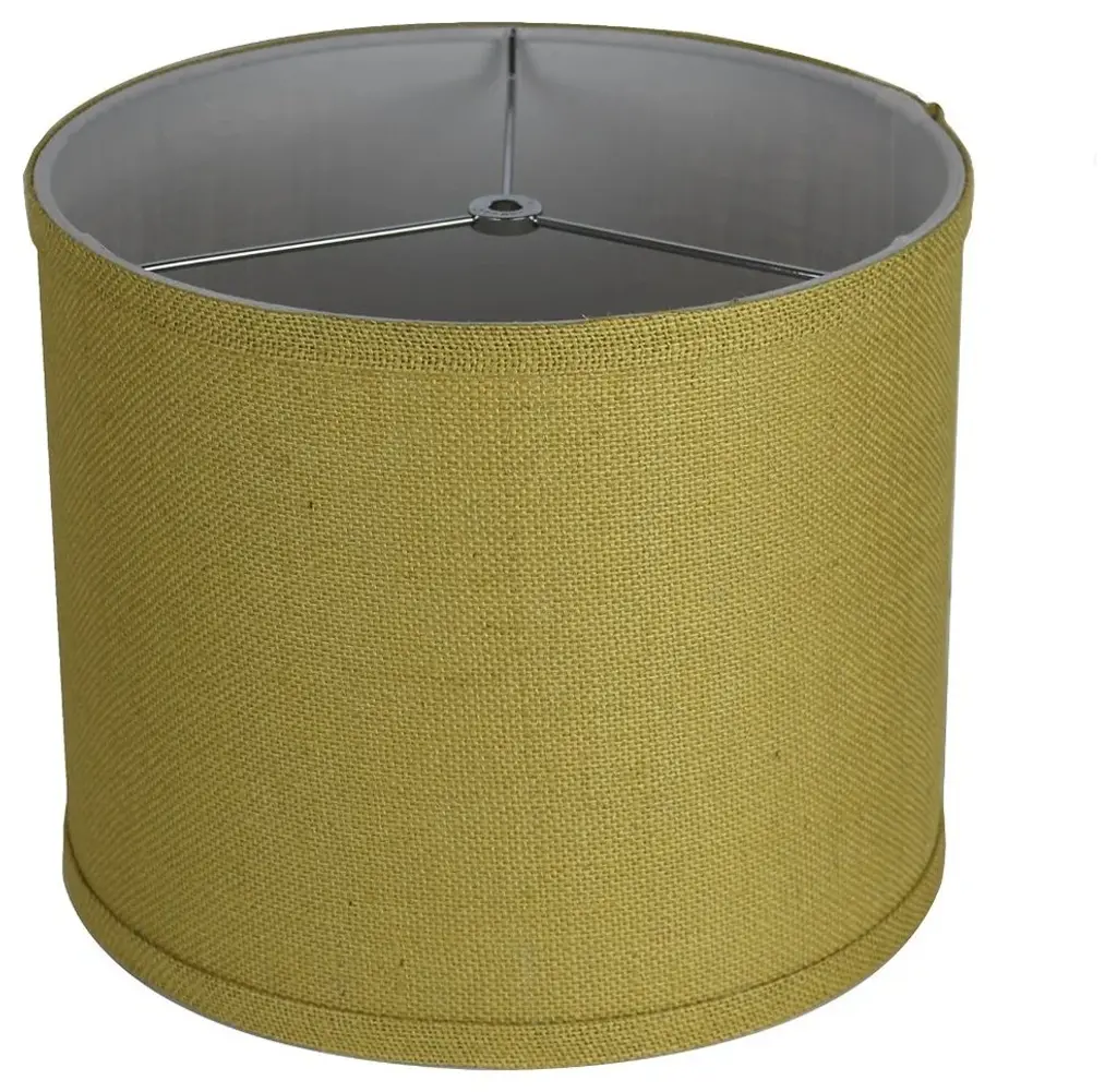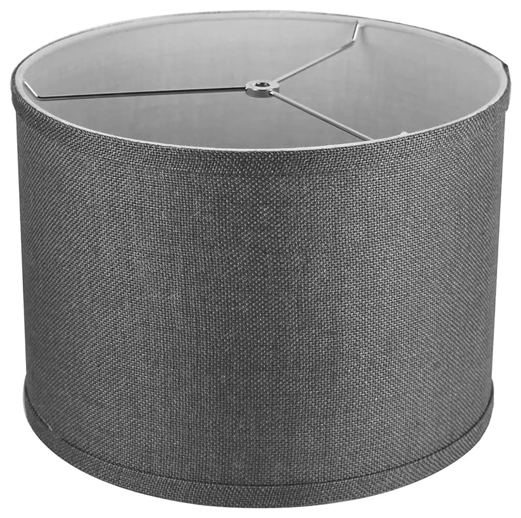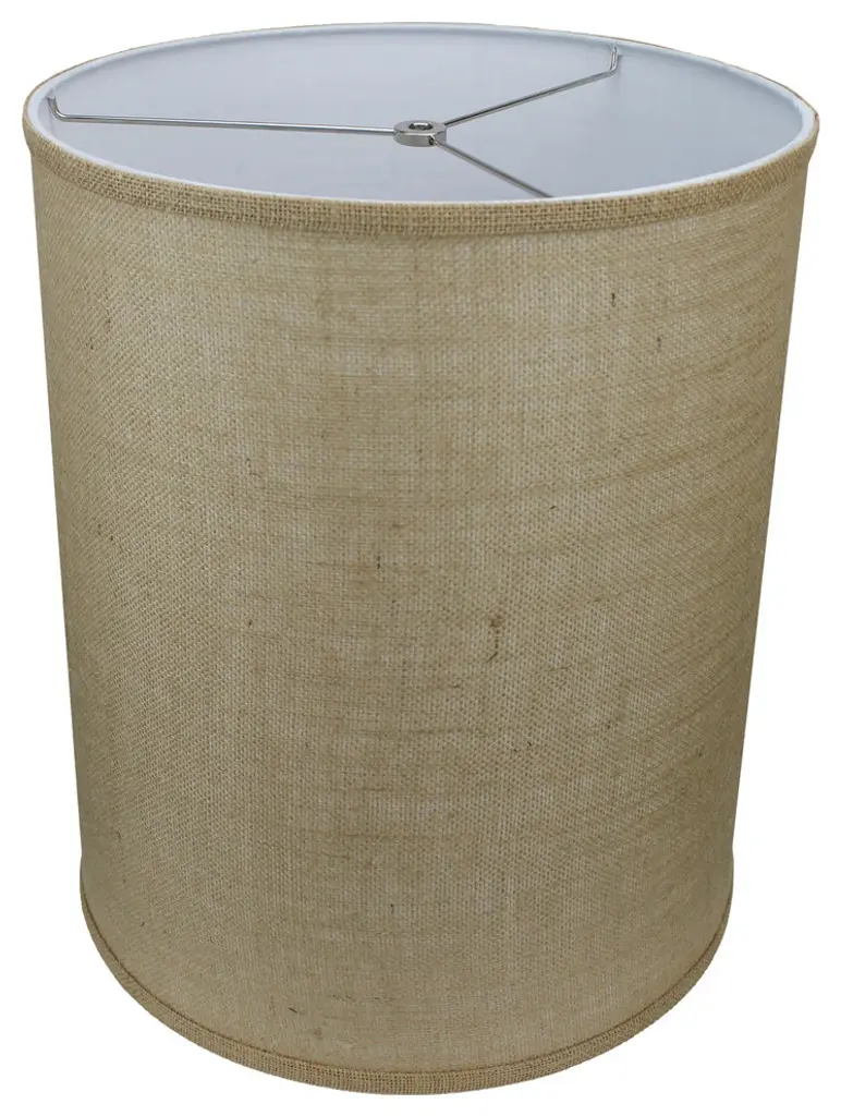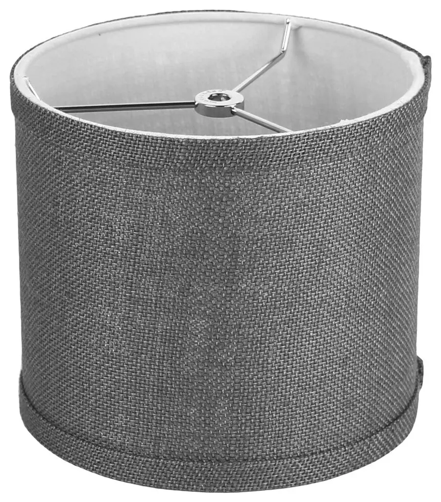 Urbanest French drum lampshade in burlap is a way to add textural light to any space. Shade measures 10" across the top, 12" across the bottom and 8 1/2" overall height Spider harp fitter works with most standard harps and lamp bases. Bulb not included.
