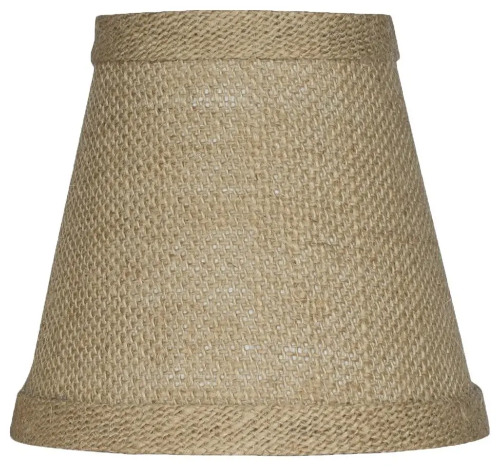 Urbanest chandelier shadeHardback shape; Clip on; Set of 9Measurements: 3" top diameter; 5" bottom diameter; 4.5" slant heightNatural burlap, self single trimUse 40 watts max candelabra bulb