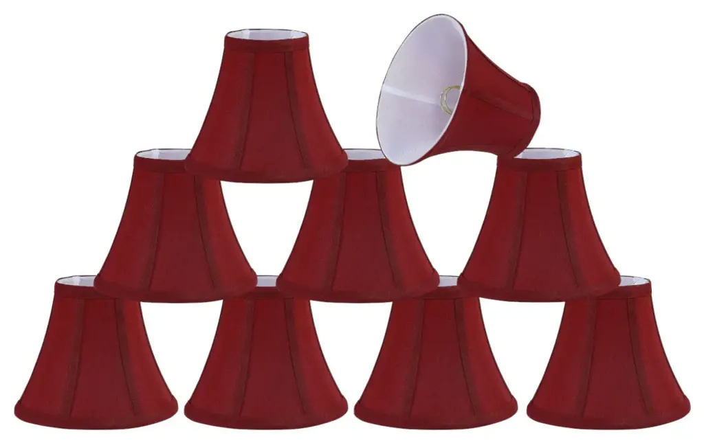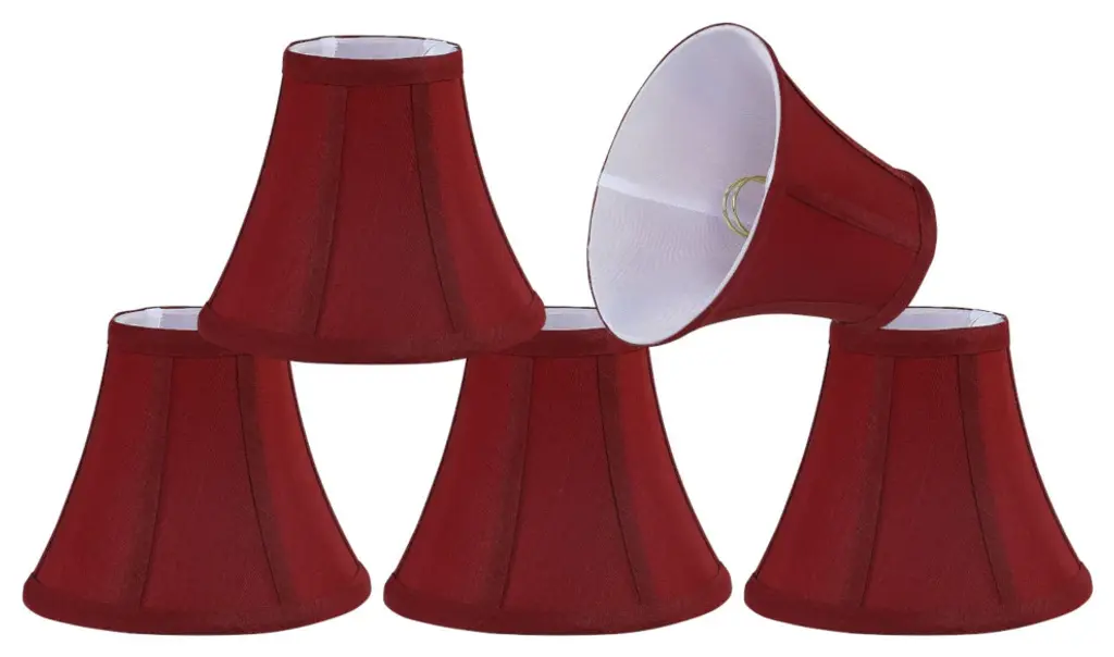Urbanest set of 2 classic hardback lamp shade in burgundy silk.Top diameter measures 5", bottom diameter measures 9", and slant height measures 7"Lining is white; spider fitter is brushed nickelMaximum recommended wattage is 60 watts. Bulb not included.List price is for two shades.