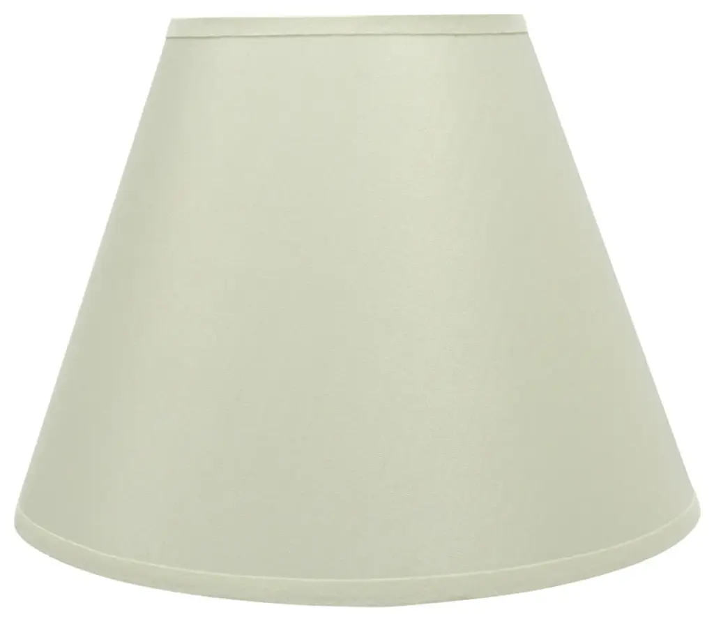 Urbanest classic hardback lamp shade in eggshell silk.Top diameter measures 5", bottom diameter measures 9", and slant height measures 7"Lining is white; spider fitter is brushed nickelMaximum recommended wattage is 60 watts. Bulb not included.List price is for one shade.