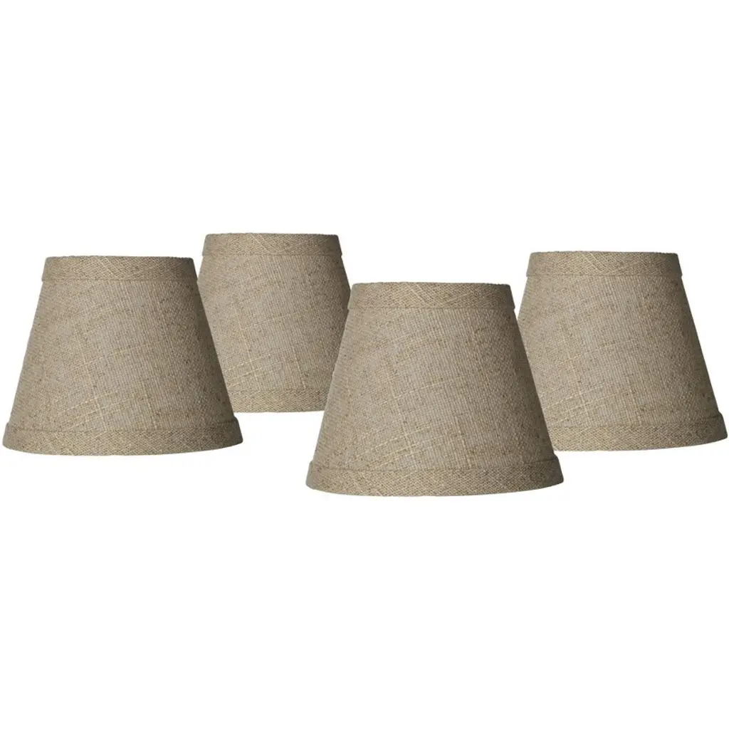Urbanest set of 2 classic hardback lamp shade in natural burlap.Top diameter measures 5", bottom diameter measures 9", and slant height measures 7"Lining is white; spider fitter is brushed nickelMaximum recommended wattage is 60 watts. Bulb not included.List price is for two shades.