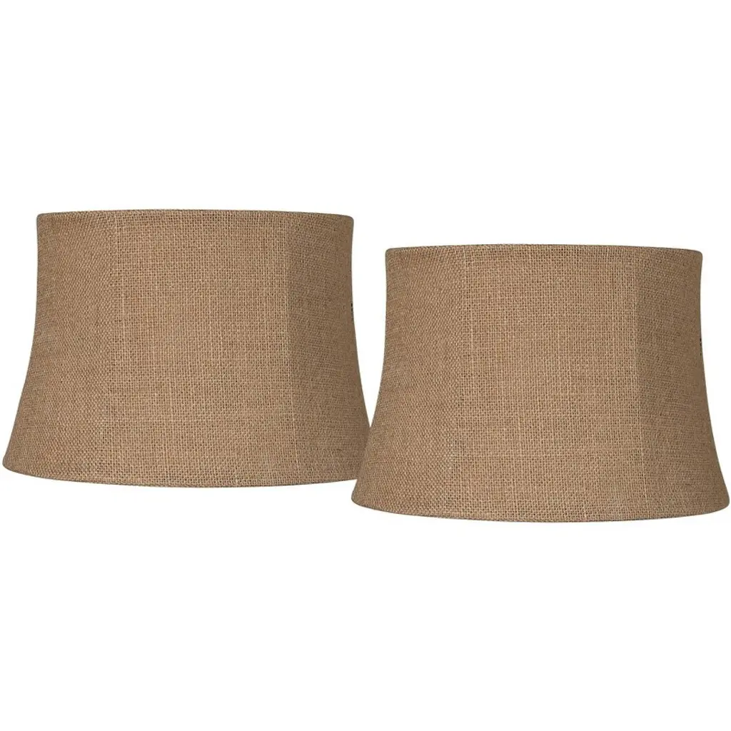 Urbanest set of 2 classic hardback lamp shade in tangerine burlap.Top diameter measures 5", bottom diameter measures 9", and slant height measures 7"Lining is white; spider fitter is brushed nickelMaximum recommended wattage is 60 watts. Bulb not included.List price is for two shades.