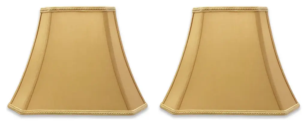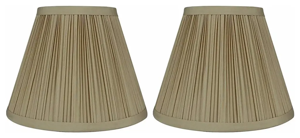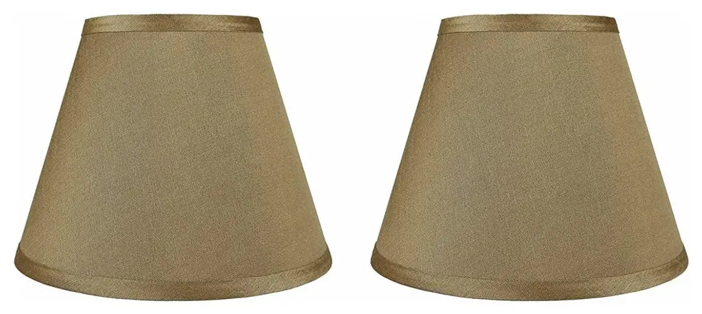 Urbanest set of 2 classic hardback lamp shade in taupe silk.Top diameter measures 5", bottom diameter measures 9", and slant height measures 7"Lining is white; spider fitter is brushed nickelMaximum recommended wattage is 60 watts. Bulb not included.List price is for two shades.