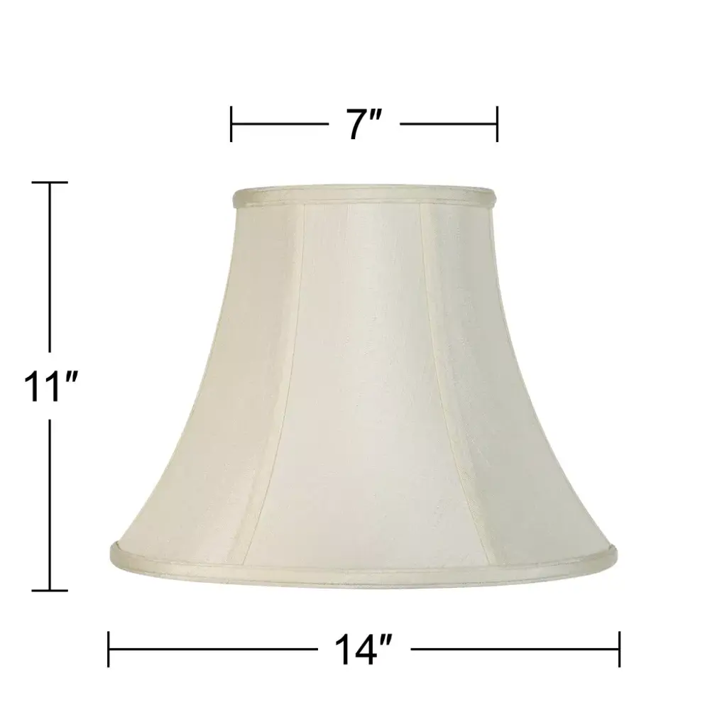Refresh your favorite table lamp with these classic bell shades. Superior creme fabric is bias cut to give the shades the best possible look. Features fine quality heavy hardware. Spider fitting.