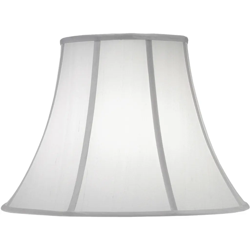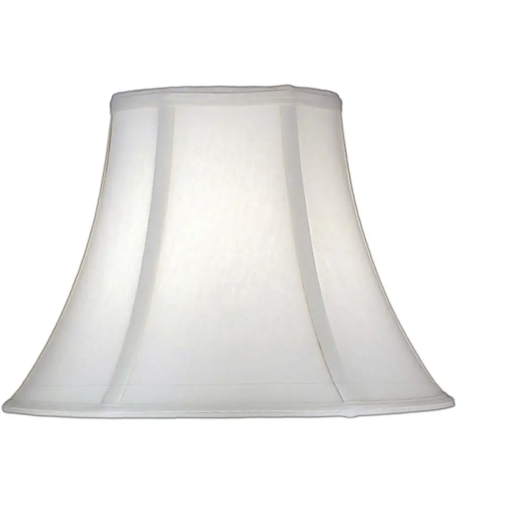 A simple, sophisticated bell shade from the Springcrest Collection. Premium white polyester fabric is bias cut for the best possible look. Inner lining is a polyester/nylon blend. Fine quality heavy hardware features a polished brass spider fitting.