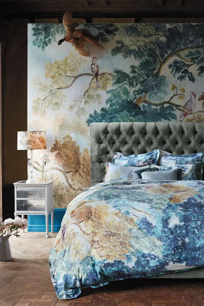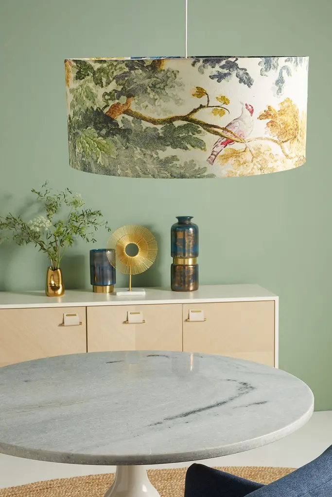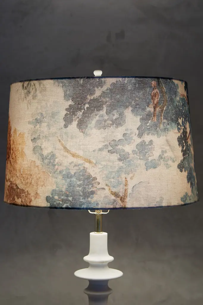 This lamp shade features a digitally printed interpretation of an antique Swedish tapestry.