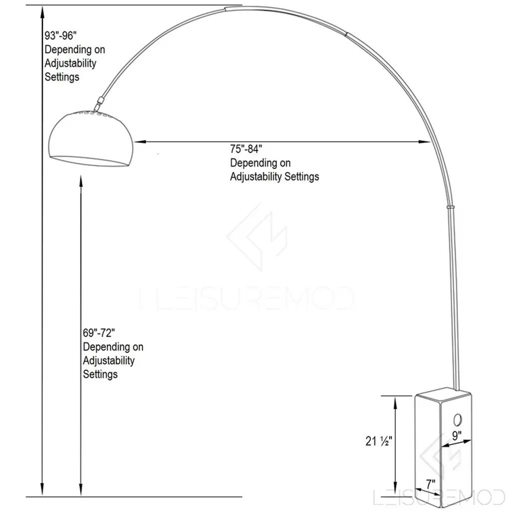 Leisuremod Arco Modern Arched Floor Lamp With Black Round Marble Base And Metal Dome Lamp Shade For Living Room And Bedroom