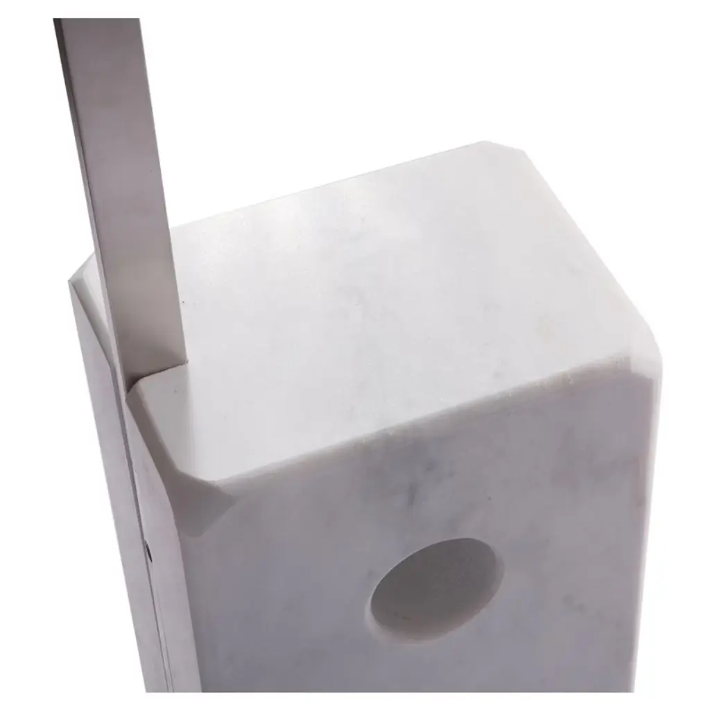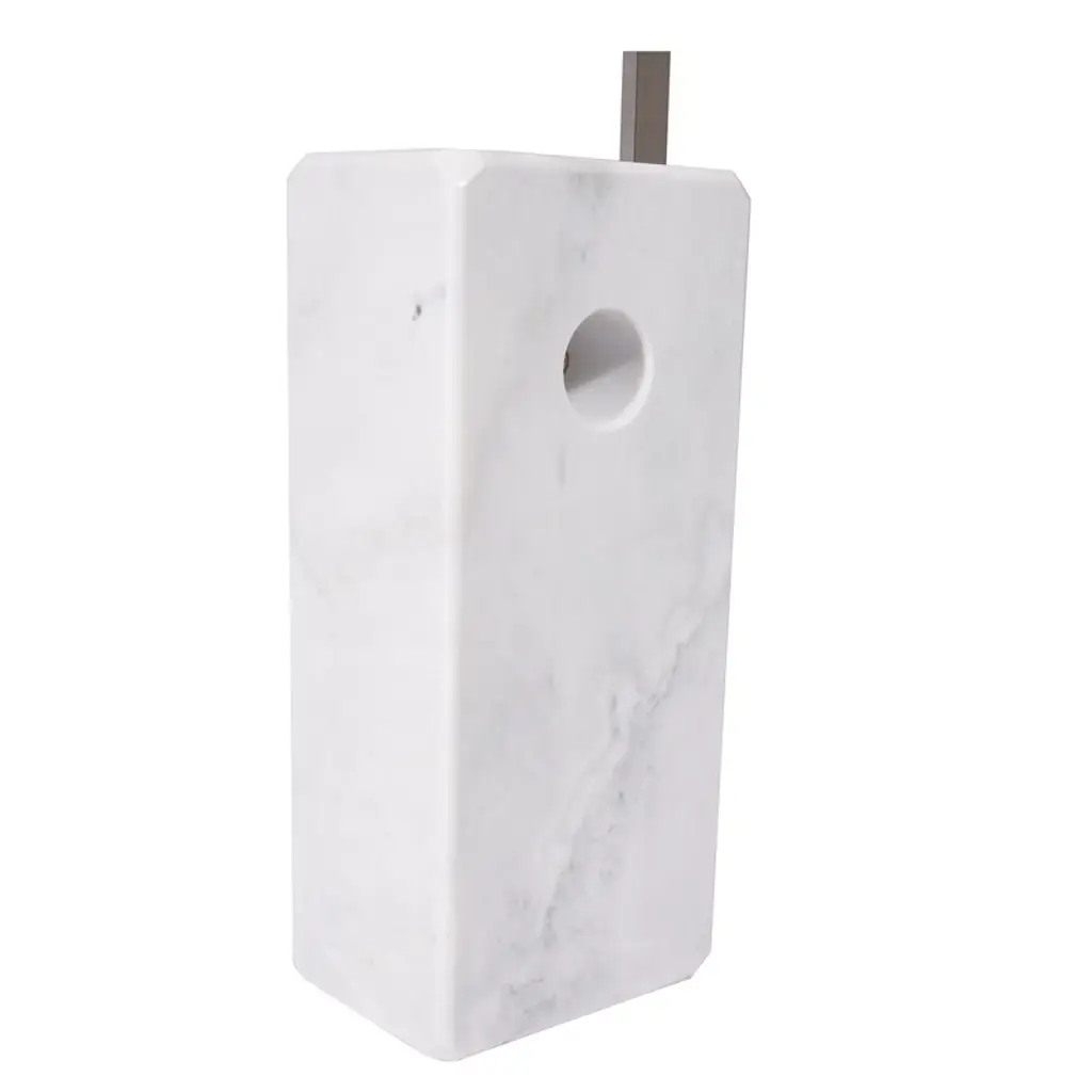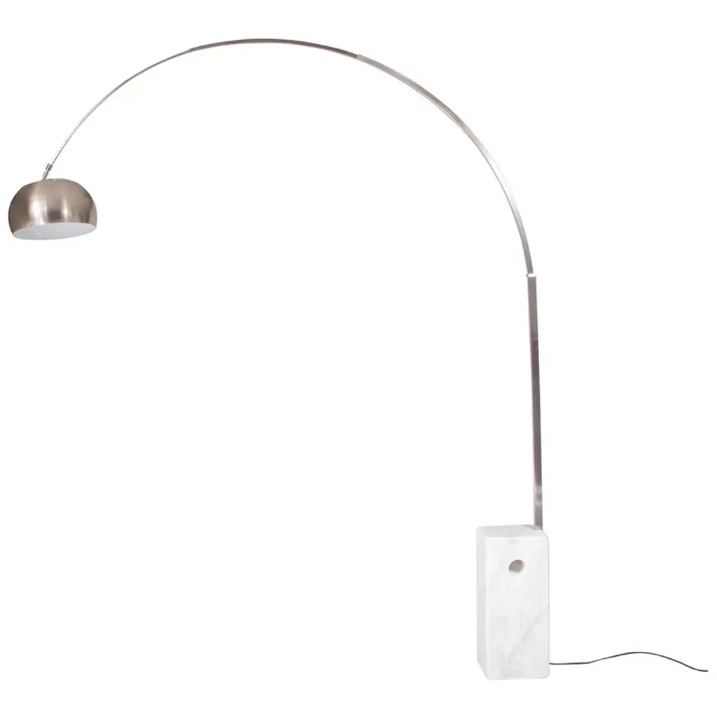 Mid-century modern design, this decorative arc light will brighten any room with its refined style. A thick Italian Marble base holds the tall stainless steel arm in place while a white reflective shade interior adds a warm glow to any room you decide to place it in. The base of light source travels from one part of the room and spans to its desired location all while adding a modern flair. More often than not, iconic pieces like the arched Arco Lamp take hold and become classics-not on looks alone, but by offering practical solutions to design difficulties.