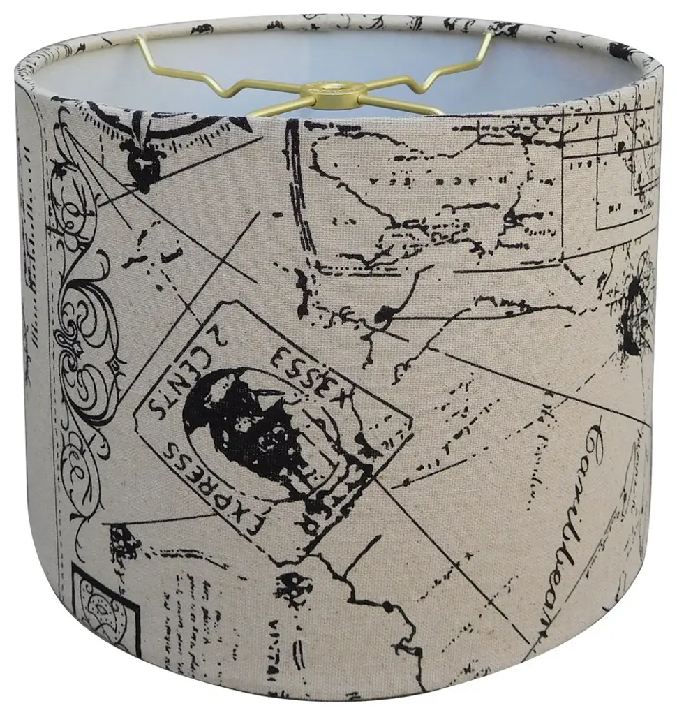 Linen Cream And Black Vintage Map Postcard Hardback Lamp Shade, 17"x18"x11.5"