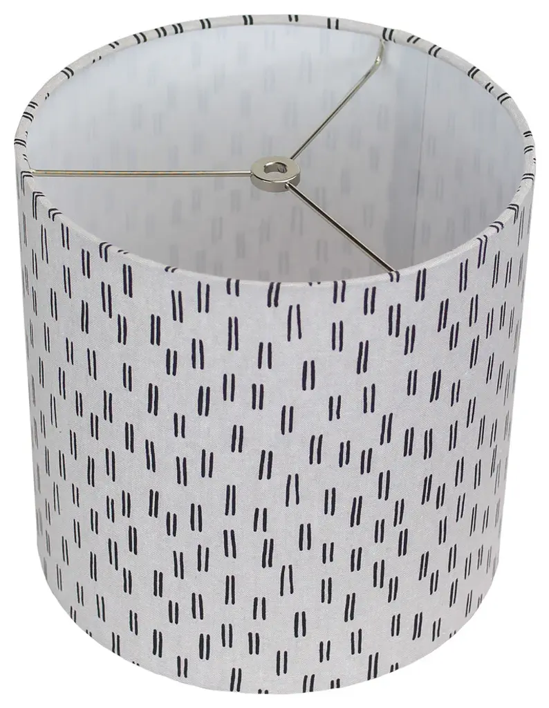 The Maratodd Drum Lampshade Bremen Collection is a patterned, modern styled shade that will transform the look of your living space. The shade measurements are 10" Top Diameter by 10" Bottom Diameter by 10" Height. The lampshade is completed with a clean rolled-edge finish on the top and bottom. The top of the shade has a nickel spider attachment which is used for lamps with a harp. The lamp base, harp and finial are not included in purchase.