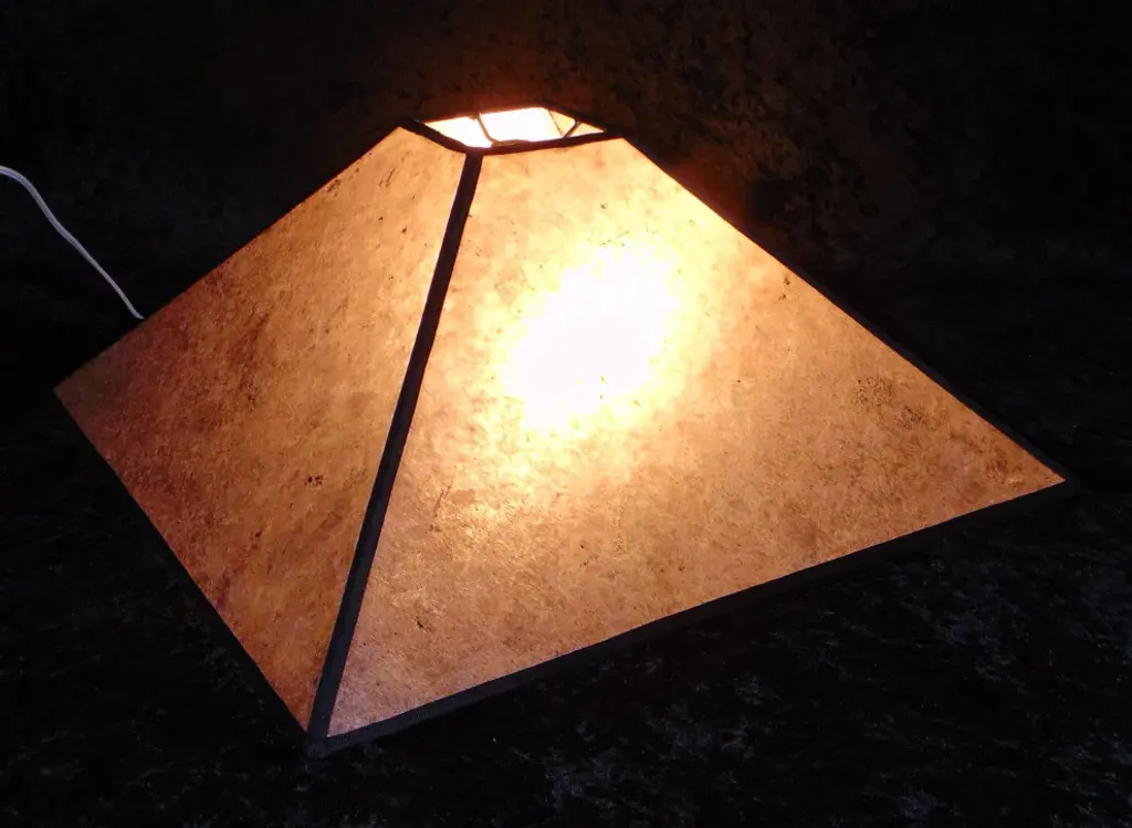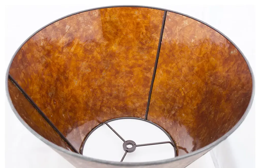 Urbanest classic handmade mica lamp shades.Measurements: 7" inches at the top; 14" inches base; 9" on the slant.Amber mica.Suggested maximum wattage for shade is 150 watts.