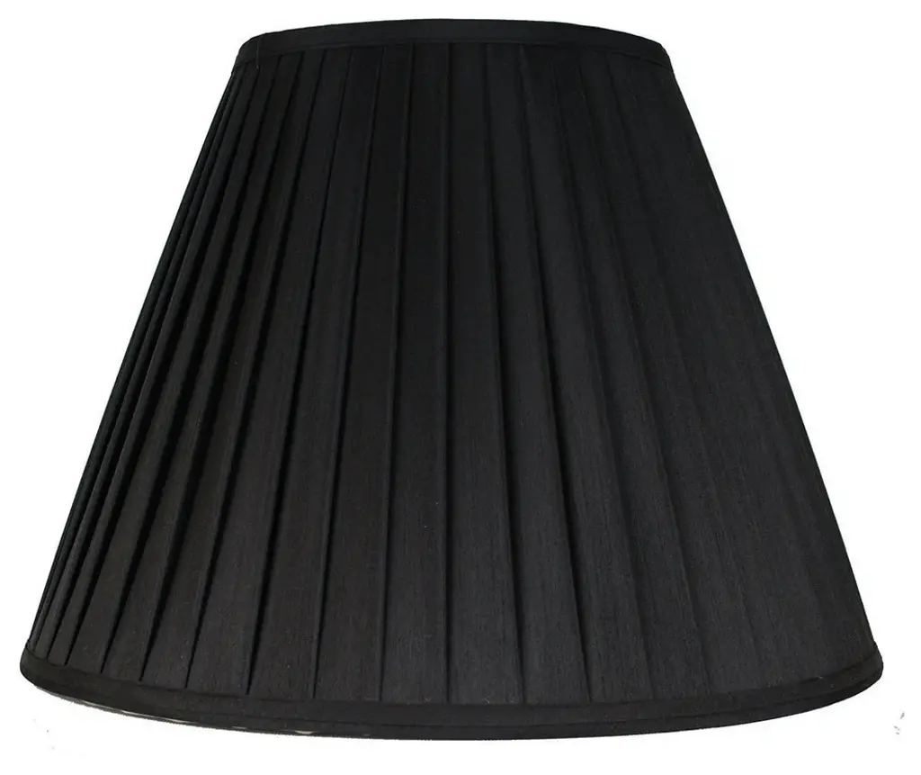 Urbanest Classic Handmade Faux Silk Mushroom Pleated Lamp Shades.Softback Random Mushroom Lamp Shape; Spider fitterMeasurements: 6" at the top; 12" base; 8" on the slant.Black Faux SilkSuggested maximum wattage for shade is 100 watts.