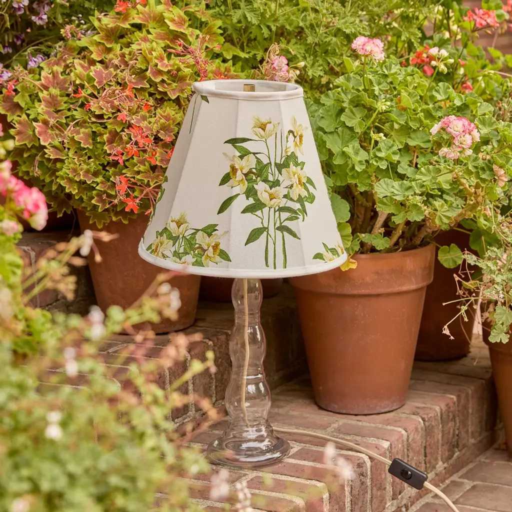 A garden, all aglow. In our best-selling Narcissus print, this 100% cotton shade covers a brass-plated steel frame. A structured style in soft florals.