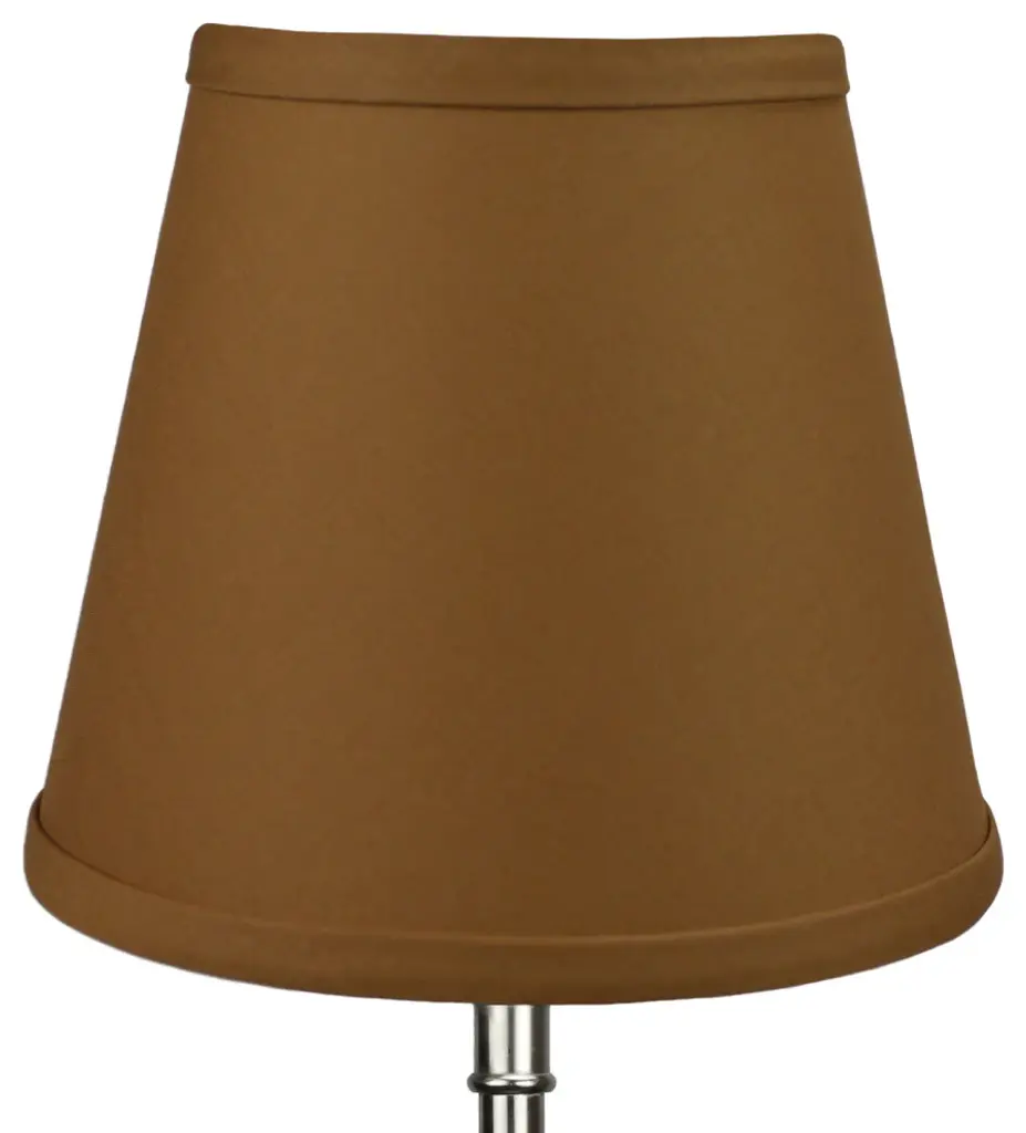 Urbanest cotton chandelier shade in orangeThis shade measures 3" across the top, 6" across the bottom, and 5" overall height.Hardback empire shape. Clip-on for candleabra bulbs. Maximum recommended wattage is 40 watts.Single shade