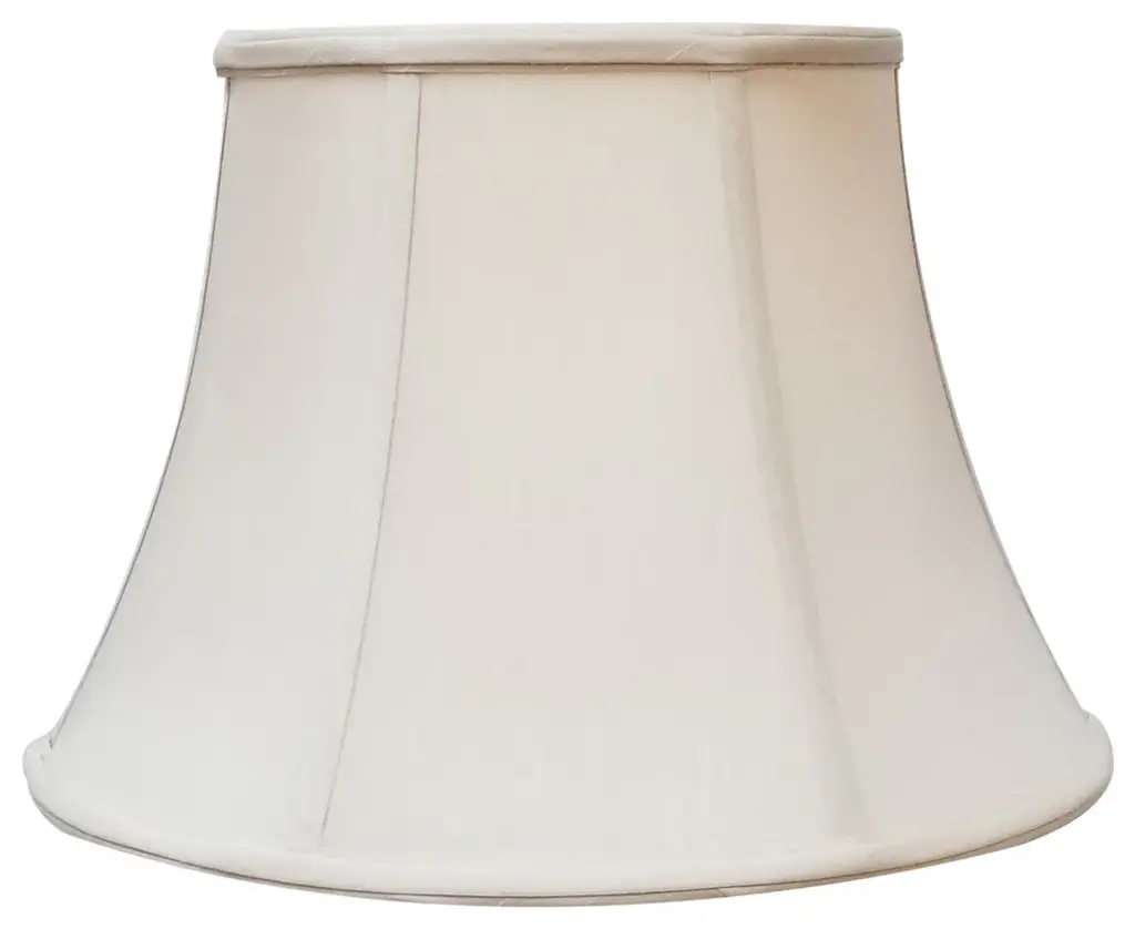 This Oval Basic Lampshade is a part of Royal Designs, Inc. Timeless Basic Shade Collection and is perfect for anyone who is looking for a traditional yet stunning lampshade. Royal Designs has been in the lampshade business since 1993 with their multiple shade lines that exemplify handcrafted quality and value.Exterior Fabric: Hand Tailored Silk-Type Shantung (except Linen, Mouton, Burlap & Faux Rawhide fabrics)Interior Fabric: Off-White Softback Lining (Black, Burlap & Faux Rawhide fabrics have gold lining)Washer: Standard brass-finish spider fitter, use a finial to fasten shade.Trim: Top and bottom trim (single or double) with vertical pipingFrame: Heavy grade rust resistant metal frameBulb: Suggested maximum wattage is 150-watt for most sizes Height is measured by slant height from top to bottom of the lampshades front facePlease measure your existing shade--a replacement harp may be needed for a proper fit or additional adjustment if changing height of shade