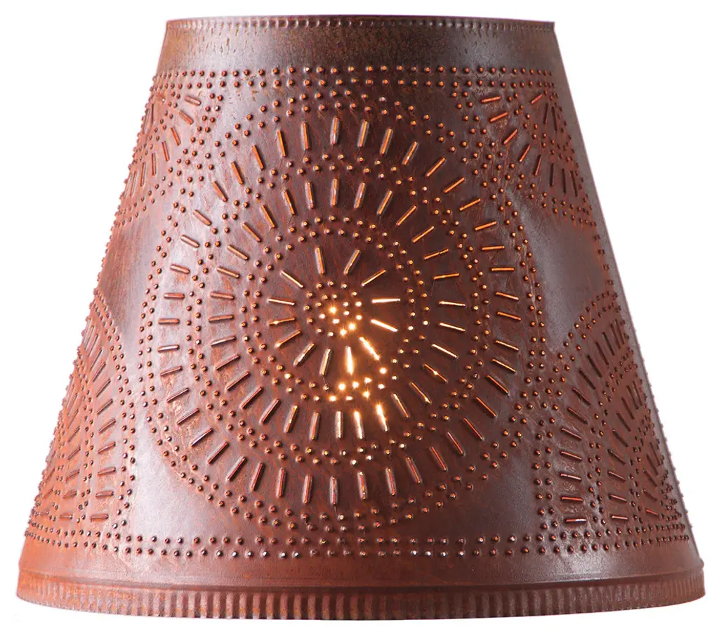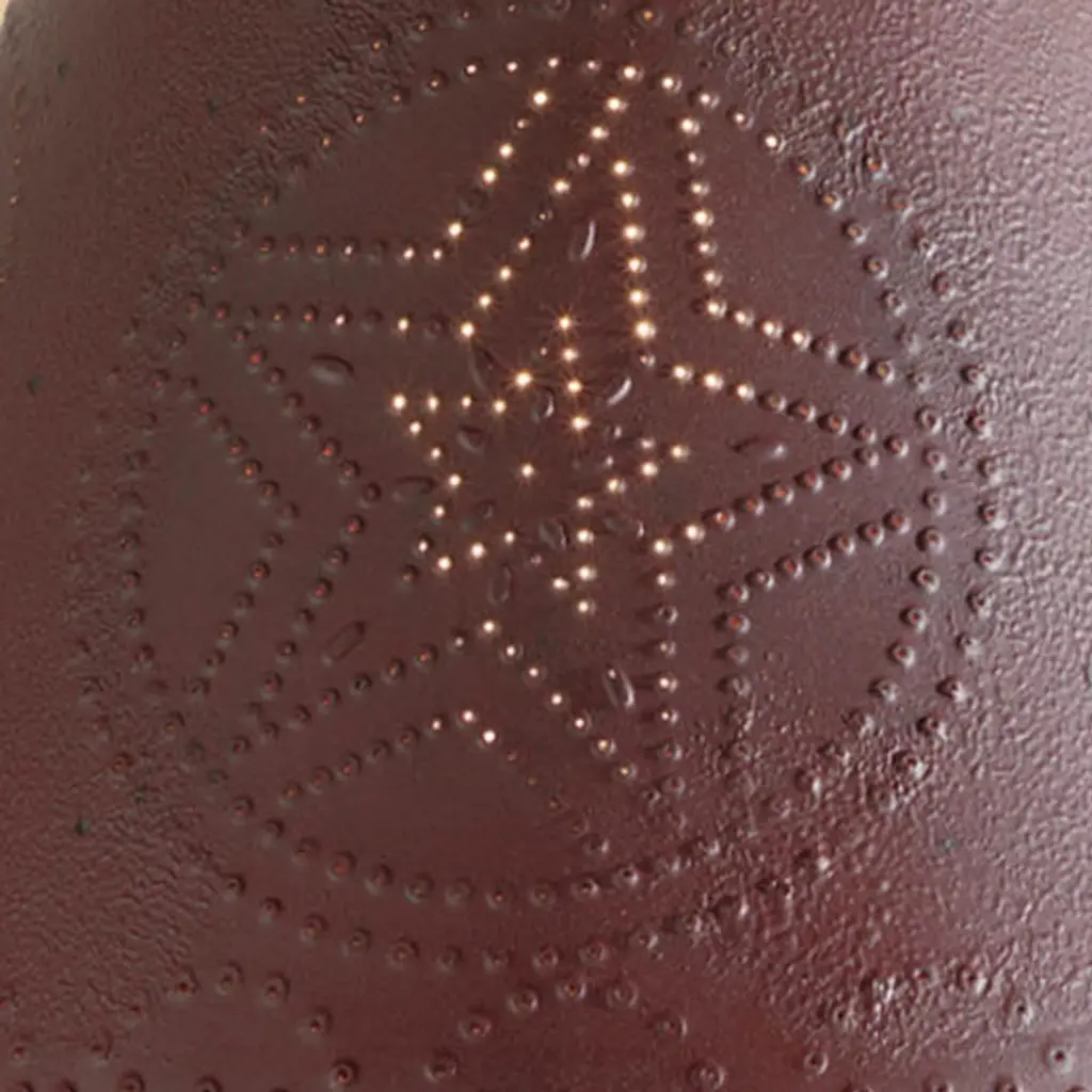 Create a unique stylish and inviting feel to your room with this red metal star 10" shade. Beautifully hand painted metal shade, featuring punched star and accents, will complement your country or primitive home decor. Perfect decoration piece for your living room, bedroom, study or office.