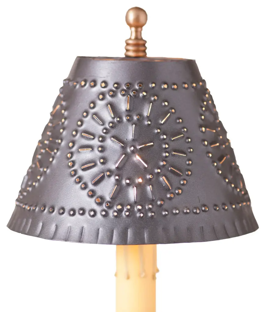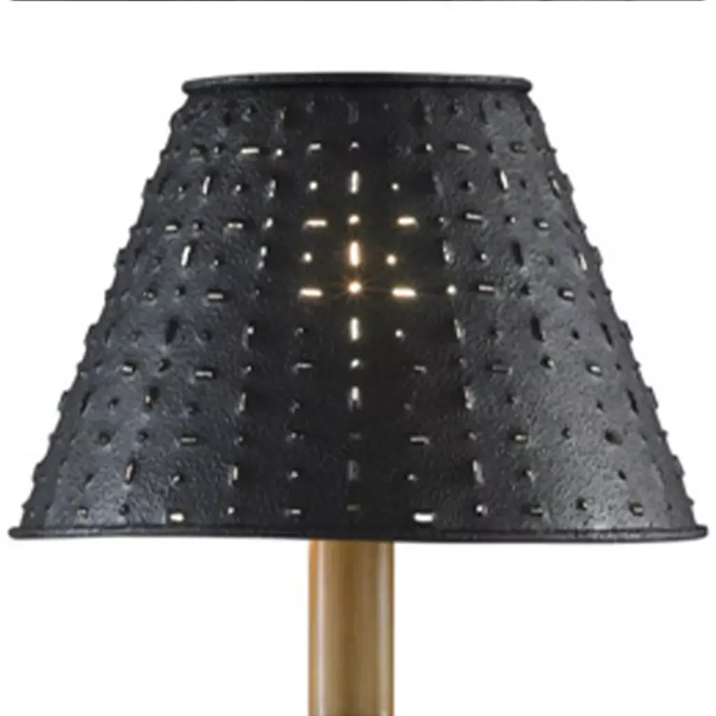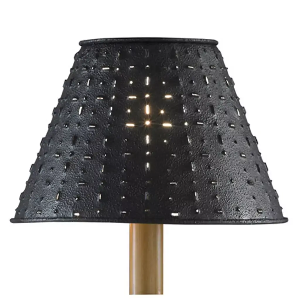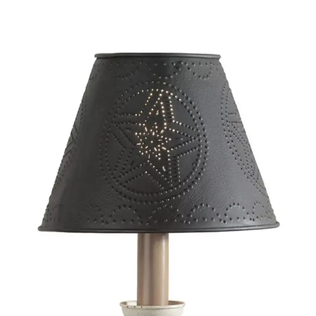 Create a unique stylish and inviting feel to your room with this red metal star 12" shade. Beautifully hand painted metal shade, featuring punched star and accents, will complement your country or primitive home decor. Perfect decoration piece for your living room, bedroom, study or office.