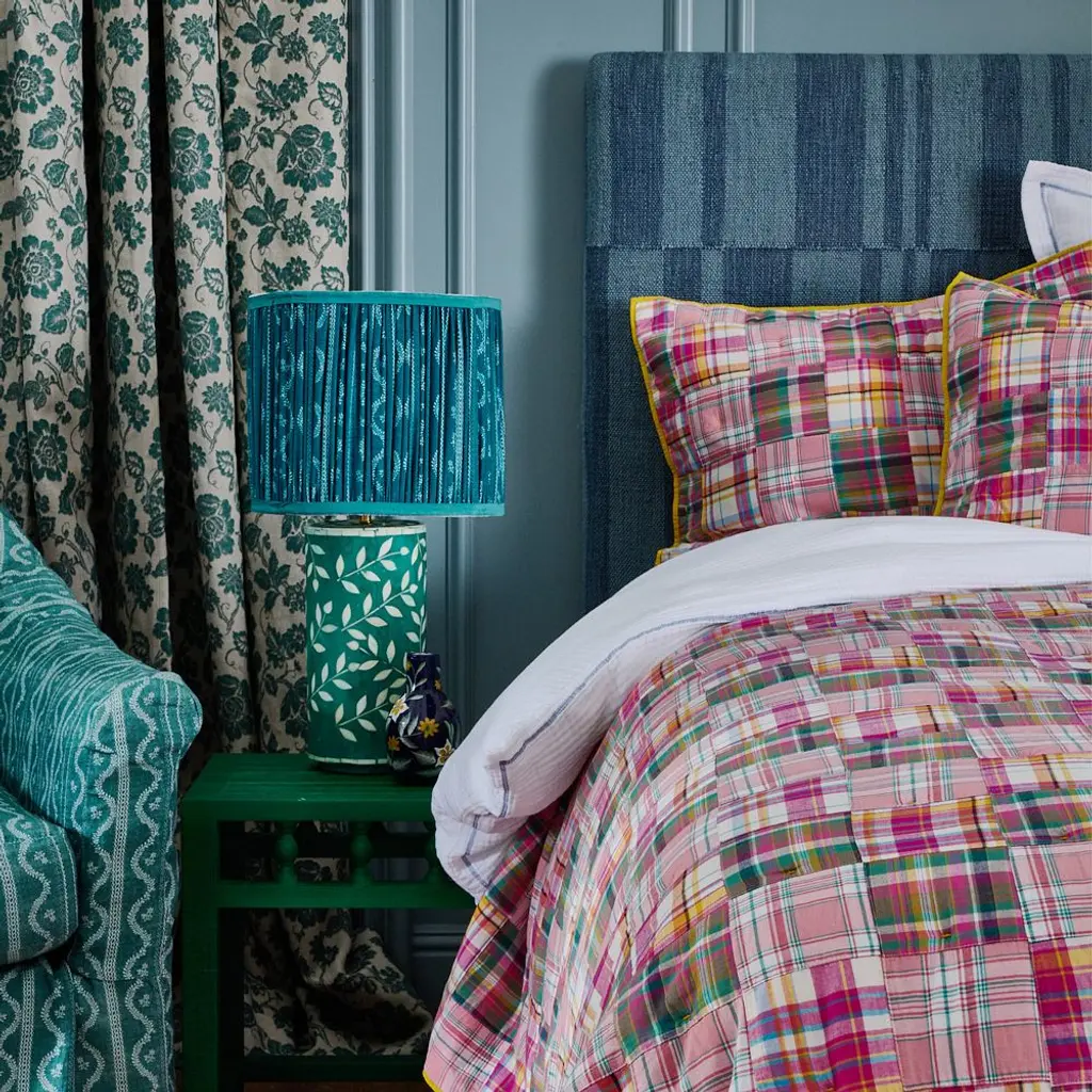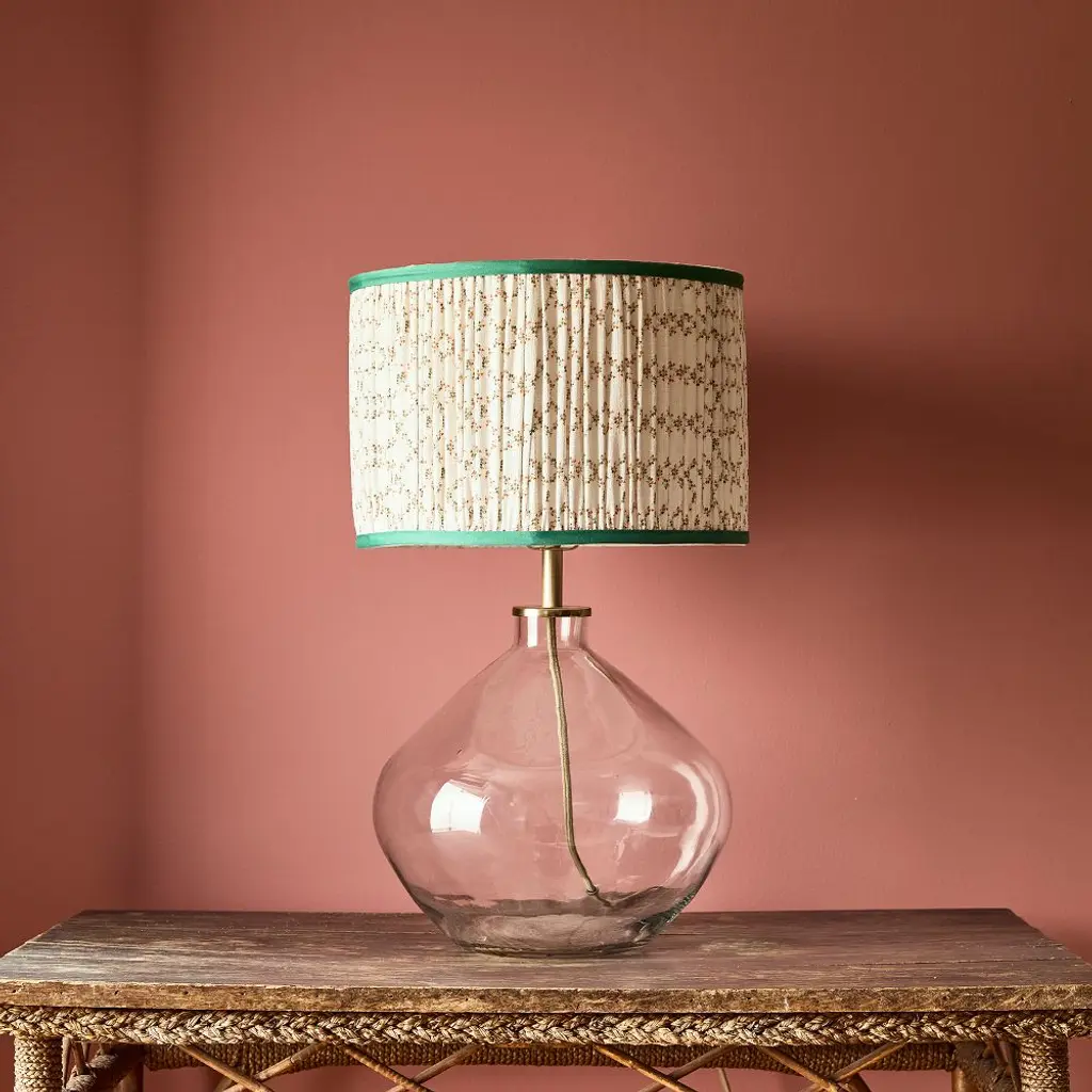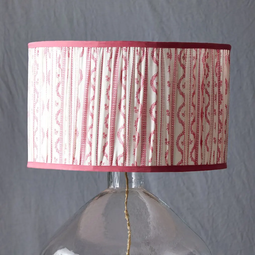 The perfect print. Ruched and stitched with ribbon trim on a milled steel frame, this 100% cotton shade adds soft texture to set a room aglow. Turn on the charm.