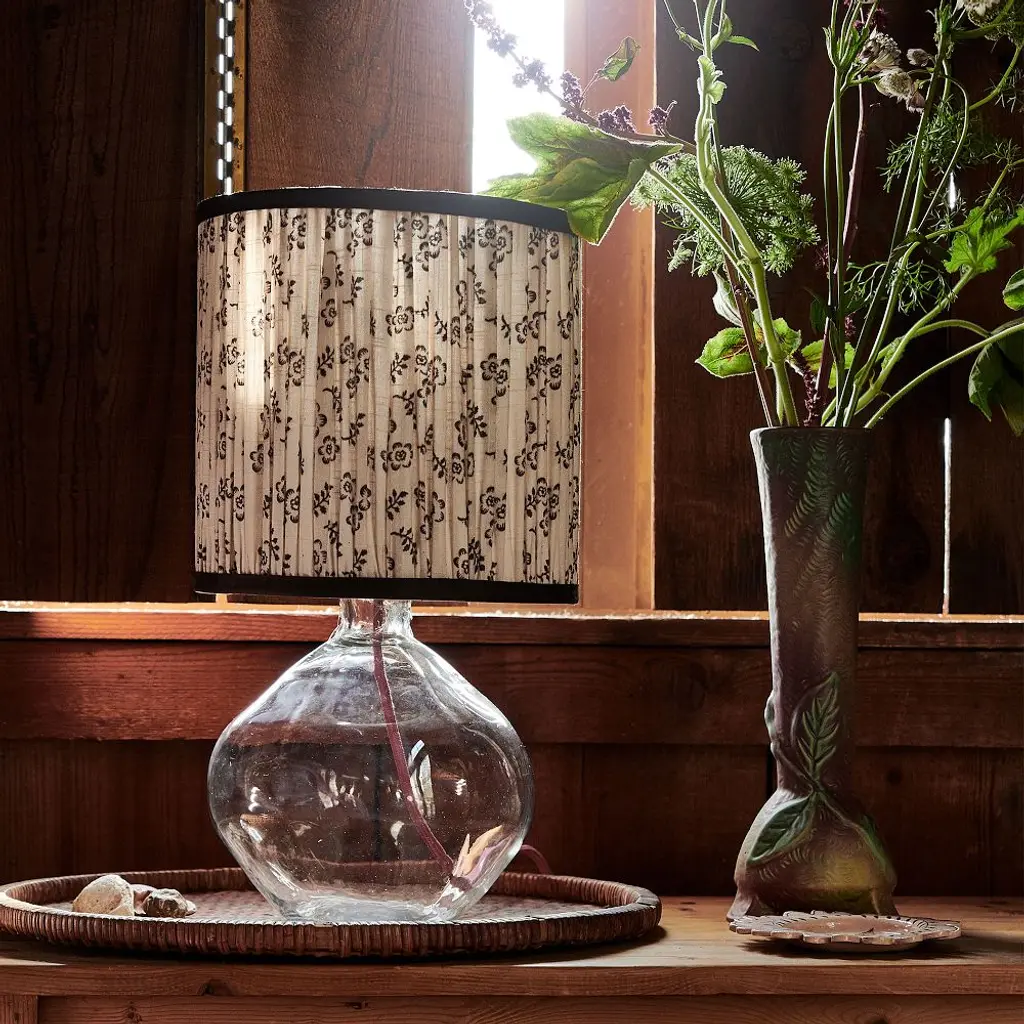 The perfect print. Ruched and stitched with ribbon trim on a milled steel frame, this 100% cotton shade adds soft texture to set a room aglow. Turn on the charm.