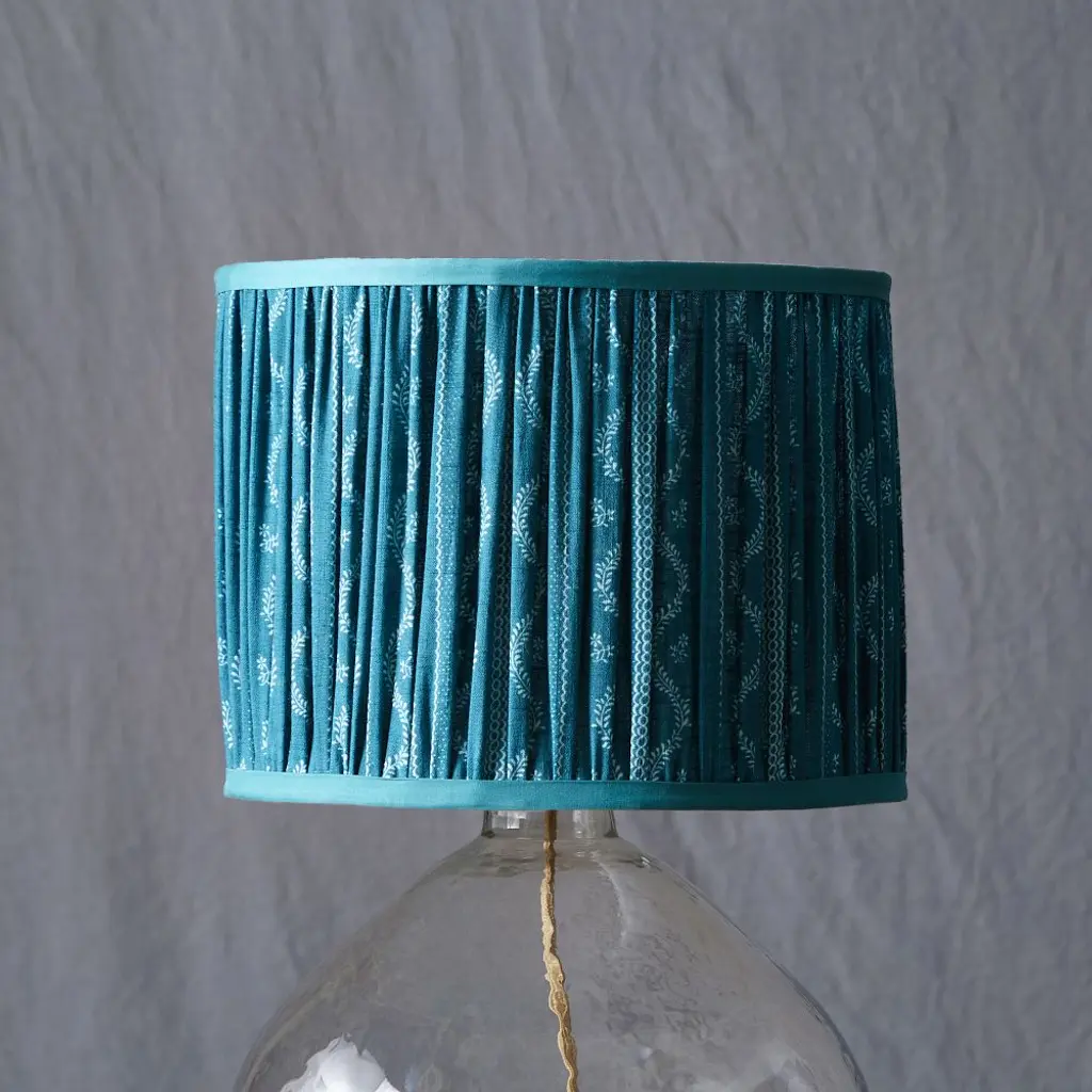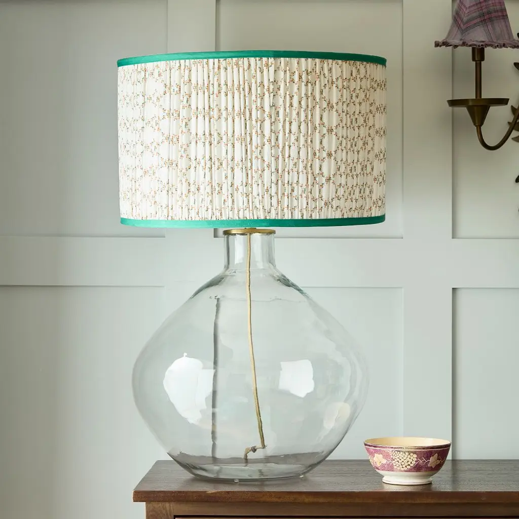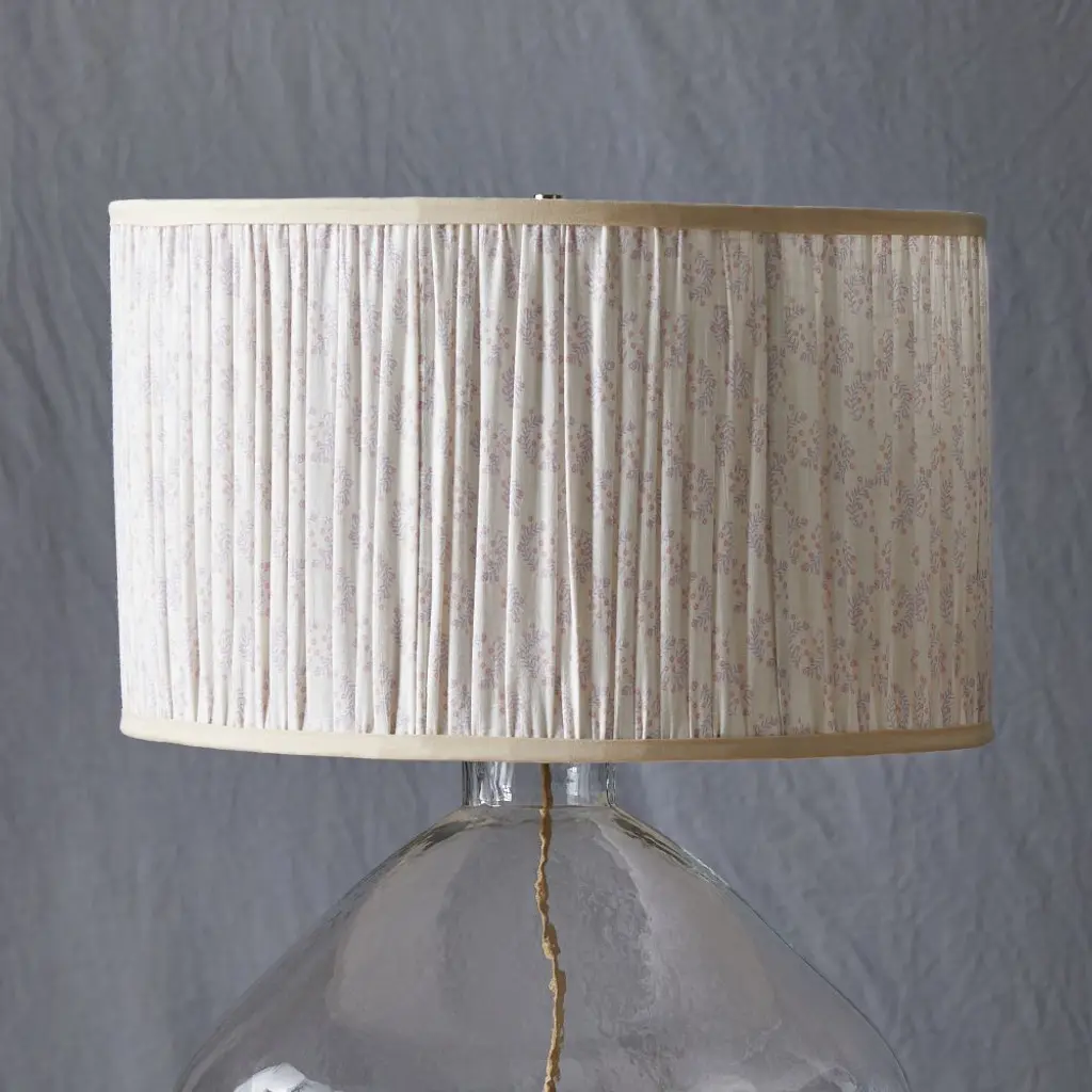 The perfect print. Ruched and stitched with ribbon trim on a milled steel frame, this 100% cotton shade adds soft texture to set a room aglow. Turn on the charm.