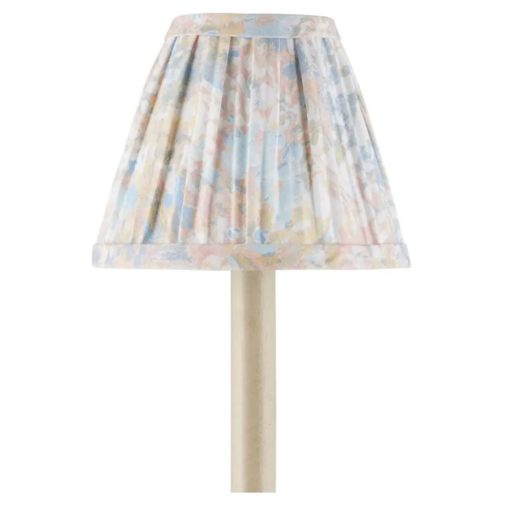 The perfect print. Ruched and stitched with ribbon trim on a milled steel frame, this 100% cotton shade adds soft texture to set a room aglow. Turn on the charm.