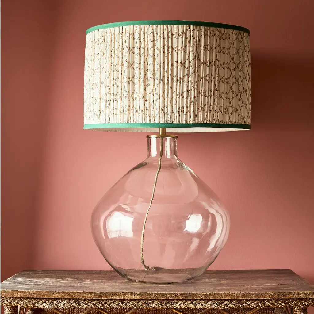 The perfect print. Ruched and stitched with ribbon trim on a milled steel frame, this 100% cotton shade adds soft texture to set a room aglow. Turn on the charm.