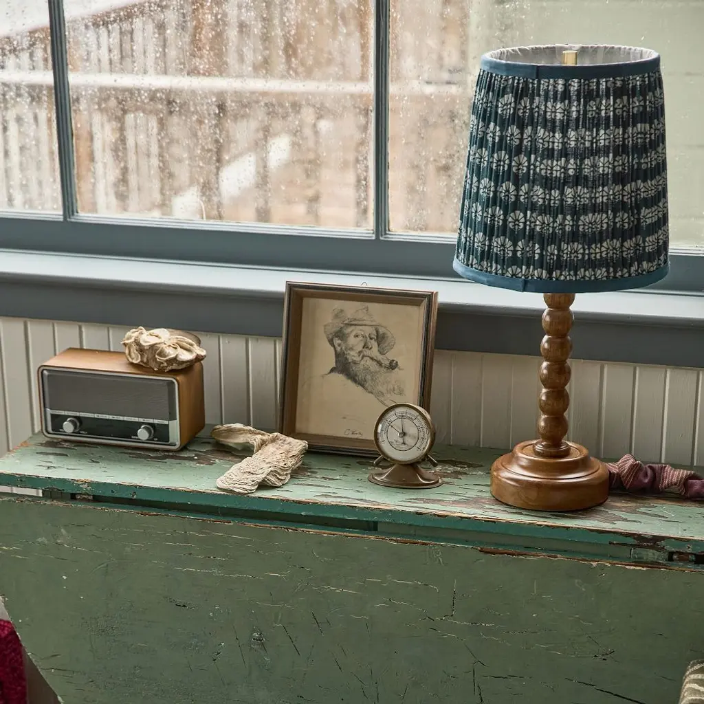 The perfect print. Ruched and stitched with ribbon trim on a milled steel frame, this 100% cotton shade adds soft texture to set a room aglow. Turn on the charm.