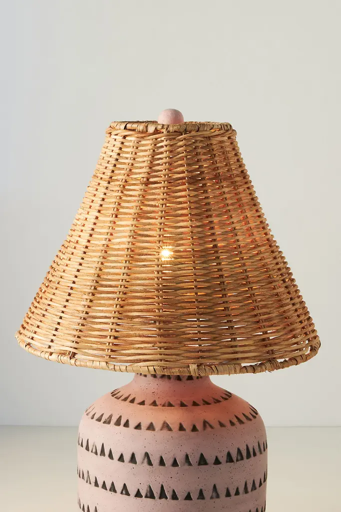 Woven from natural rattan in an eye-catching empire silhouette, this shade invites a touch of nature indoors.