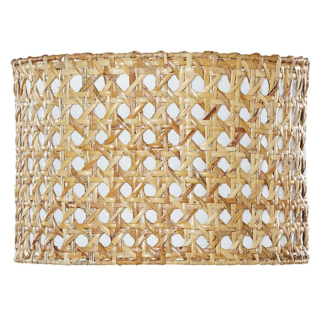 Global texture in warm natural rattan. Our Rattan Drum Shade is beautifully hand woven in an airy eyelet weave that lends any table lamp a relaxed, inviting look. This casual replacement lamp shade is lined in ivory cotton fabric to soften the light. Rattan Drum Shade features: