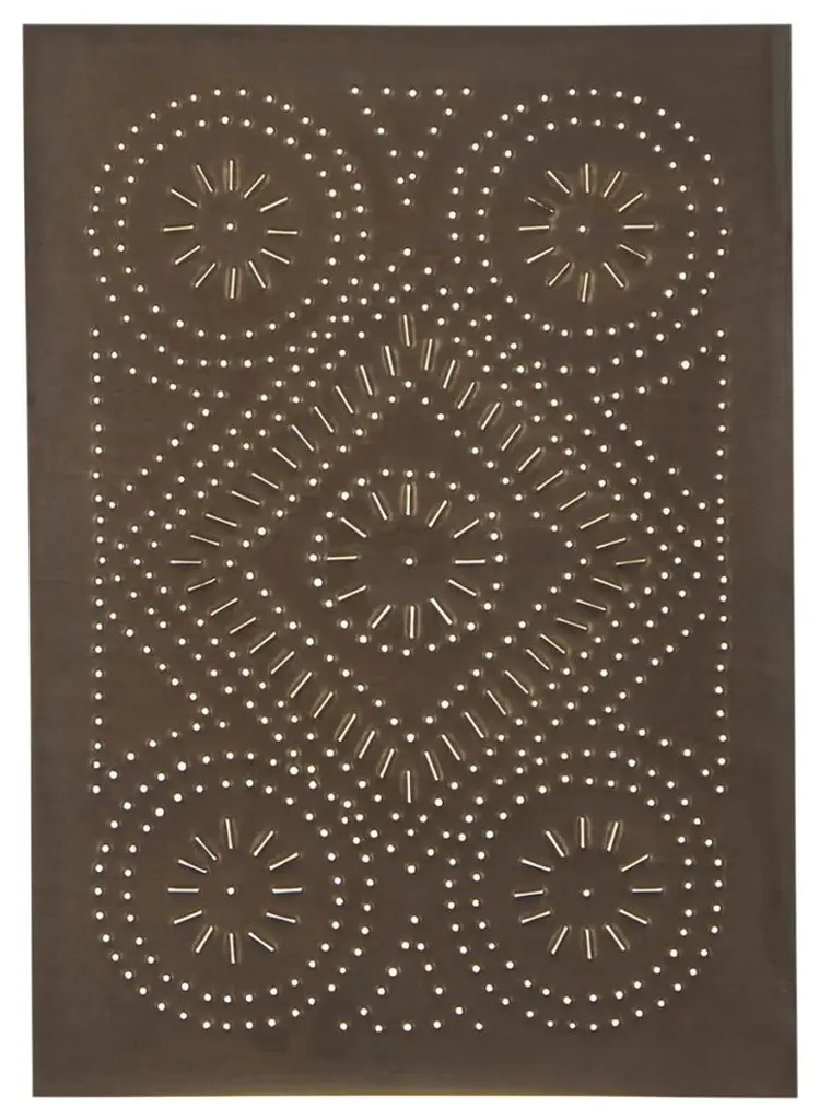 A beautiful rectangular shade that will be the perfect complement to our rectangular candle mold lamp or any other rectangular shaped lamp you may need a shade to adorn. Smokey black finish. Washer fitting for use with harp. Imported.Bulbs Not Included