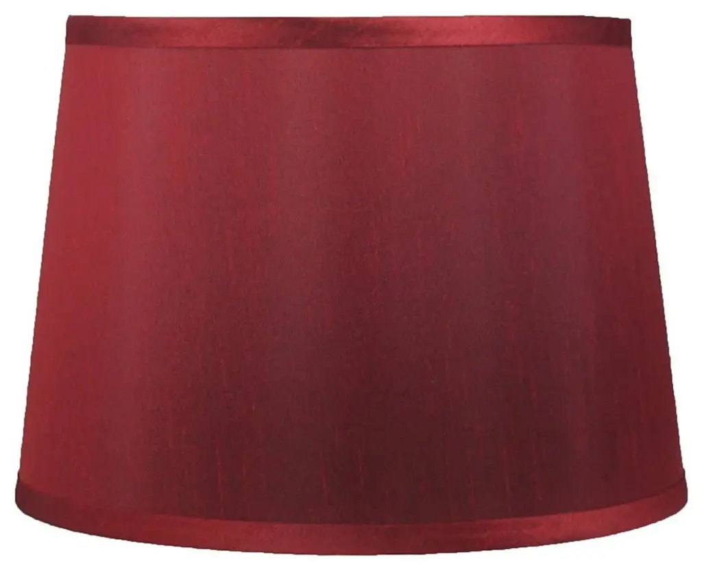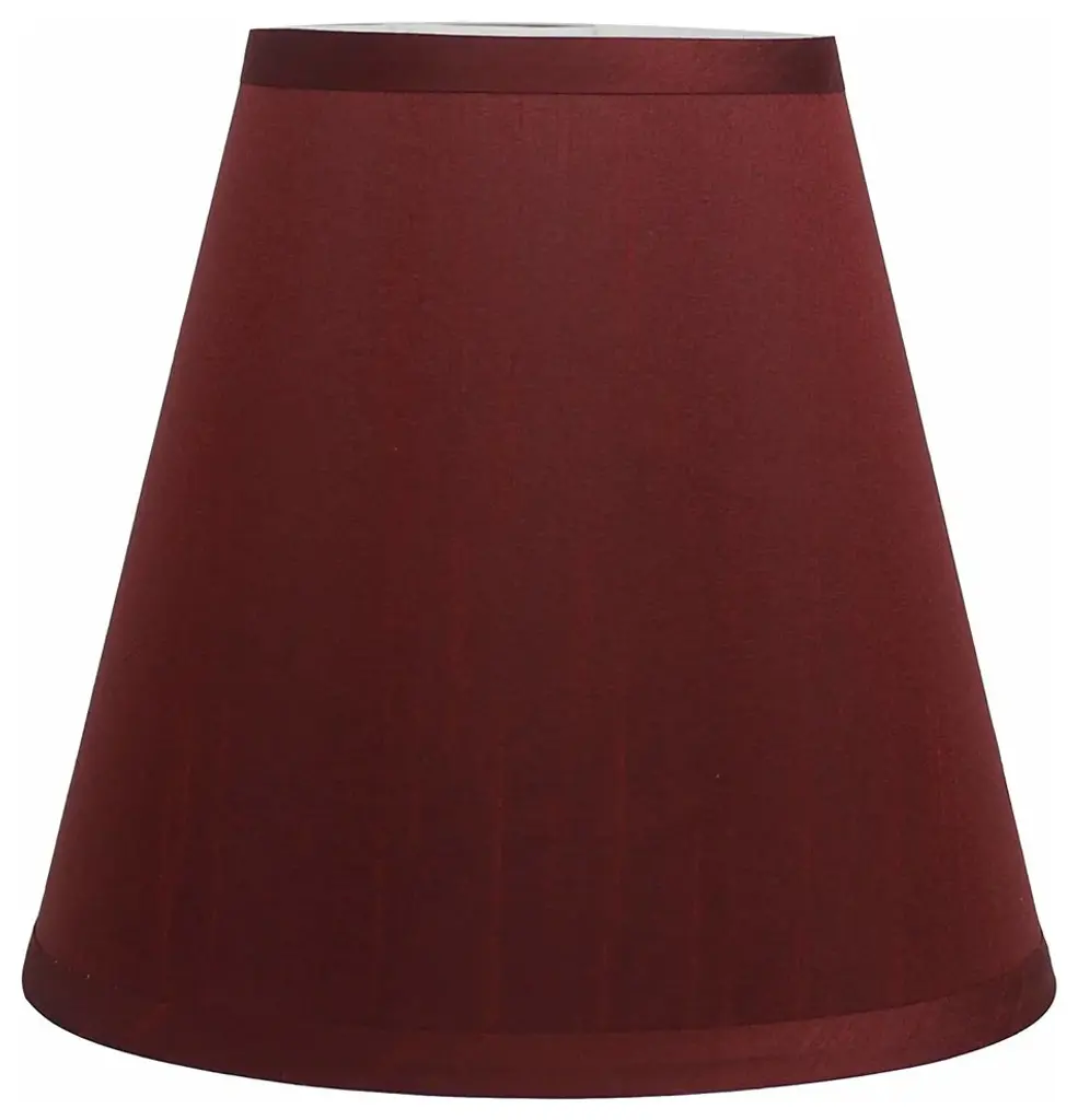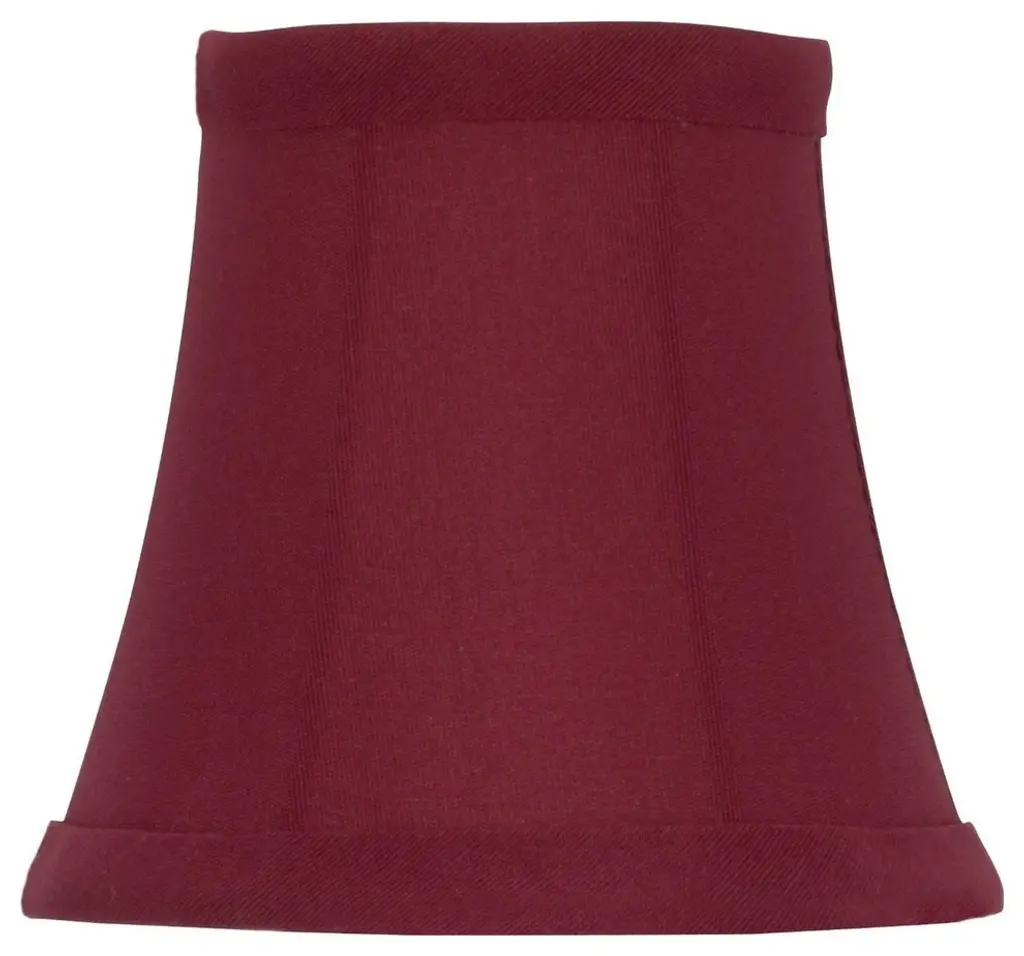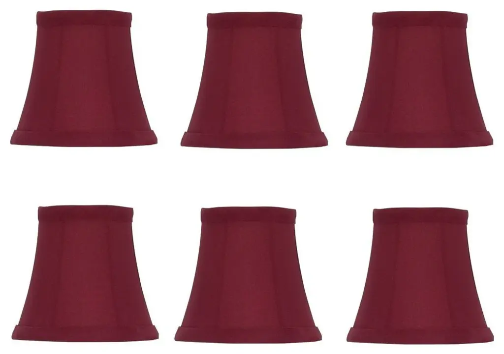 Upgradelights Set of Six Red English Barrel chandelier Lamp Shade 5 Inch English Barrel chandelier Lamp Shade in Ruby Red Shade Dimensions: 2.5 inch top X 5 inch bottom X 4.25 inch height Top Quality Fabric with matching trim on top and bottom Brass flame clip (clips onto 40 watt candelabra bulb). Set of six shades