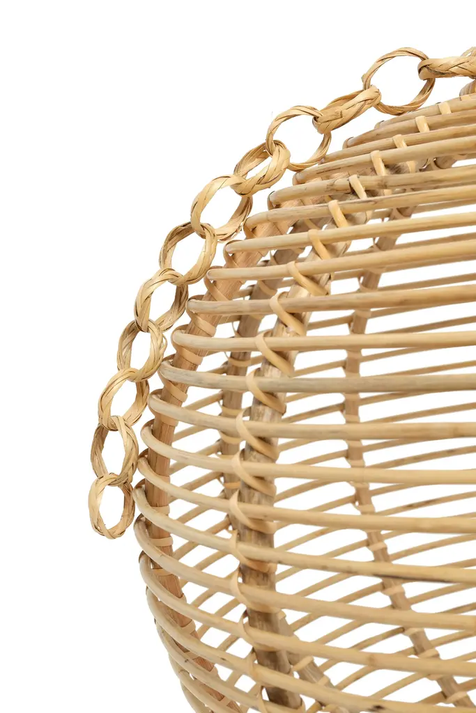Illuminate your space with our handmade rattan and cane round hanging lampshade. Handmade by skilled artisans in India, this decor piece is not just a lighting fixture but a work of art. Perfect for dining areas, living rooms, or bedrooms, this bamboo lighting is designed to effortlessly elevate any space. Comes with a cord kit.