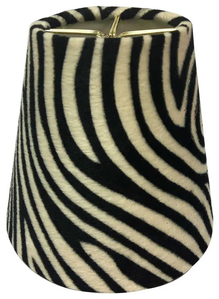 This shade is a part of Royal Designs, Inc. Timeless Chandelier Shade Collection and is perfect for anyone who is looking for a simple yet stunning lampshade.Shade Dimensions: 3 x 6 x 4.5 (Top x Bottom x Height)Shape: EmpireFabric: Faux Fur FabricClip: Features CLIP-ON fitter designed to fit over a candelabra bulb base (most shades available with double clip-on). Suggested maximum wattage is 60-watt candelabra bulb.Frame: Heavy grade 1.5mm rust resistant metal frame. Thicker than typical standard lamp shades.Royal Designs has been in the lampshade business since 1993 with their multiple shade lines that exemplify handcrafted quality and value.