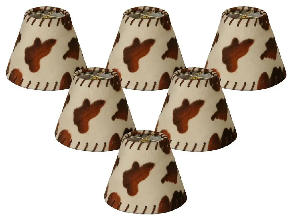 Royal Designs 6" Brown/beige Cowhide Chandelier Lamp Shade With Lace, Single
