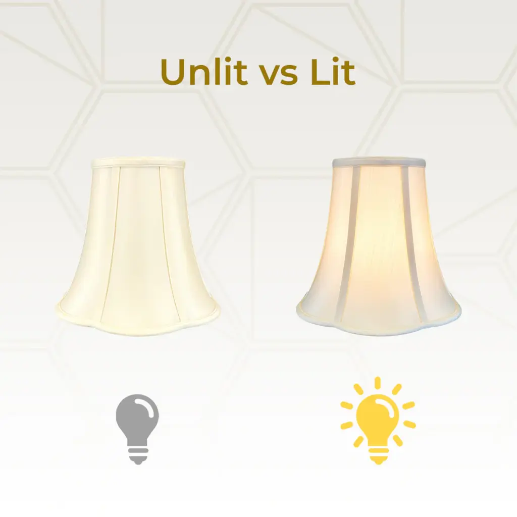 This Flare Bottom Outside Corner bell lampshade is a part of Royal Designs, Inc. Royal Designs has been in the lamp shade business since 1993 with its multiple shade lines that exemplify handcrafted quality and value. Our basic lamp shades collection is perfect for anyone looking for simple yet stunning lamp shades. The lampshades are available in a variety of shapes, sizes, colors, and styles. Our basic shades will blend into your home or office interiors and act as an intriguing decor piece. Take a pick from our Cut-corner or the elegant V-notch style, to add the touch of the appealing atmosphere for either reading, romance, or dining.Specification:Brand: Royal Designs, Inc.Type: Scallop Bell Lamp ShadeMaterial: FabricShape: Scallop BellColor: Antique Gold/ Beige/ Black/ Eggshell/ WhiteSize: 5 x 10 x 8.25 inch/ 6 x 12 x 10.25 inch/ 5 x 13 x 8.75 inch/ 7 x 14 x 11.5 inch/ 8 x 16 x 13 inch/ 9 x 18 x 16 inch/ 10 x 20 x 15.5 inchBulb Type: IncandescentMax Bulb Wattage: 100 watts