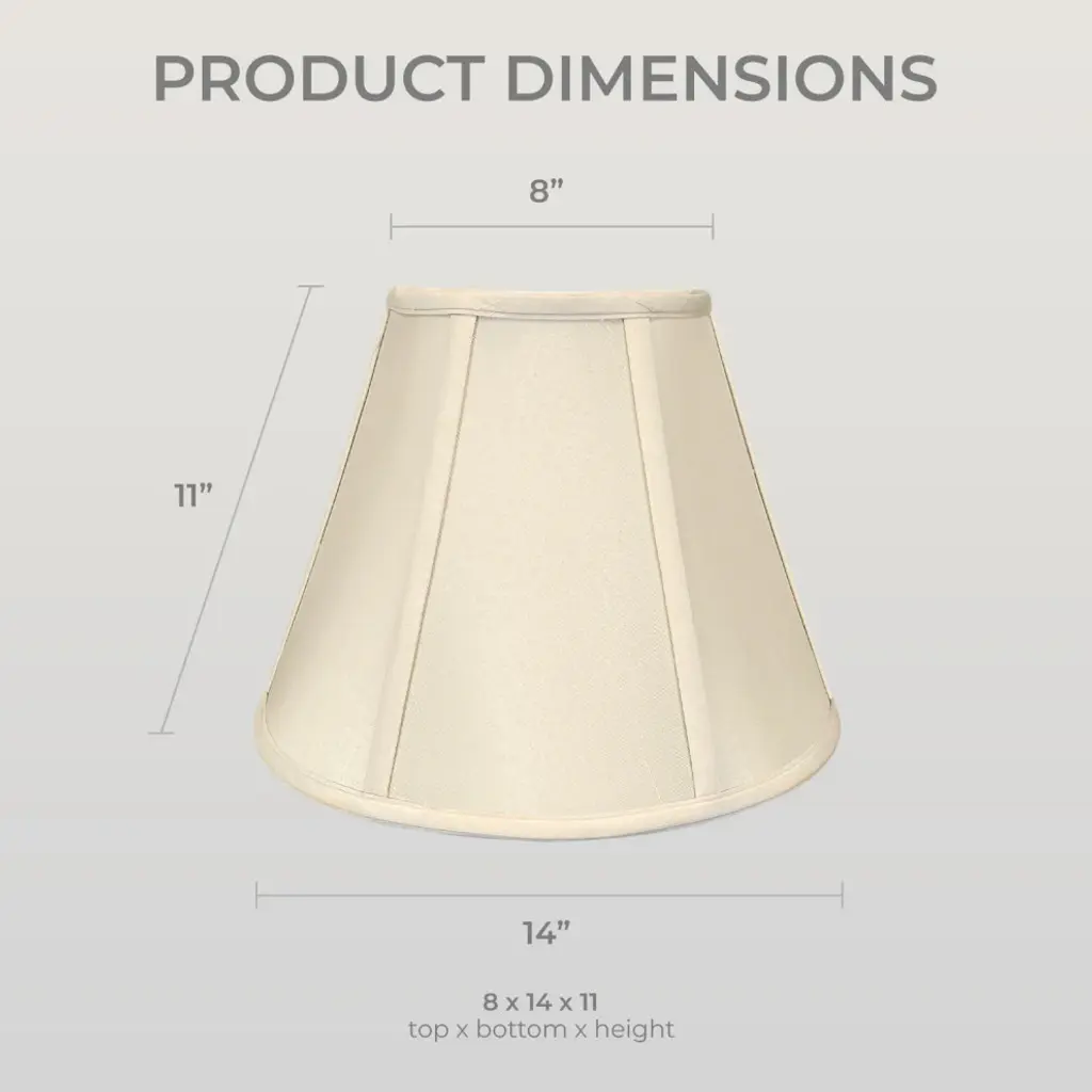 The Deep Empire Basic Lamp Shade is part of the Royal Designs, Inc. Timeless Basic Shade Collection and is a traditional yet stunning way to finish the look of your lamp. Our fancy lampshade makes a subtle statement and will turn your floor lamp or table lamp into a talking piece. We have decades of experience in the business of lampshades and we''re proud to offer multiple product lines that exemplify handcrafted quality and value. Be sure to browse our vast collection of shades in a wide variety of distinctive shapes that will add a new level of sophistication to your lighting and home decor.Height is measured on the slant from the top to the bottom of the lamp shade''s front face.DIMENSION: Our traditional basic empire lamp shade measures 6" x 12" x 9.25" (Top Diameter x Bottom Diameter x Slant Height)DIMENSION: Our traditional basic empire lamp shade measures 8" x 14" x 11" (Top Diameter x Bottom Diameter x Slant Height)DIMENSION: Our traditional basic empire lamp shade measures 9" x 16" x 12.25" (Top Diameter x Bottom Diameter x Slant Height)DIMENSION: Our traditional basic empire lamp shade measures 9" x 18" x 14" (Top Diameter x Bottom Diameter x Slant Height)MATERIALS: Our classic lampshade is made from premium silk-type shantung fabric and sturdy off-white styrene lining.EASY TO USE: The standard spider fitter works with most lamps and is held in place by any final or cap.TRADITIONAL DESIGN: Works perfectly with floor lamps or tall table lamps with a small to medium base. Our shade will also fit in beautifully in transitional and modern home decors.APPLICATION: Use our lamp shade for table lamps, accent lamps, vintage lamps, and even candlestick lamps! The timeless design is great for any room.Specification:Brand: Royal Designs, Inc.Type: Empire Lamp ShadeMaterial: FabricShape: Empire