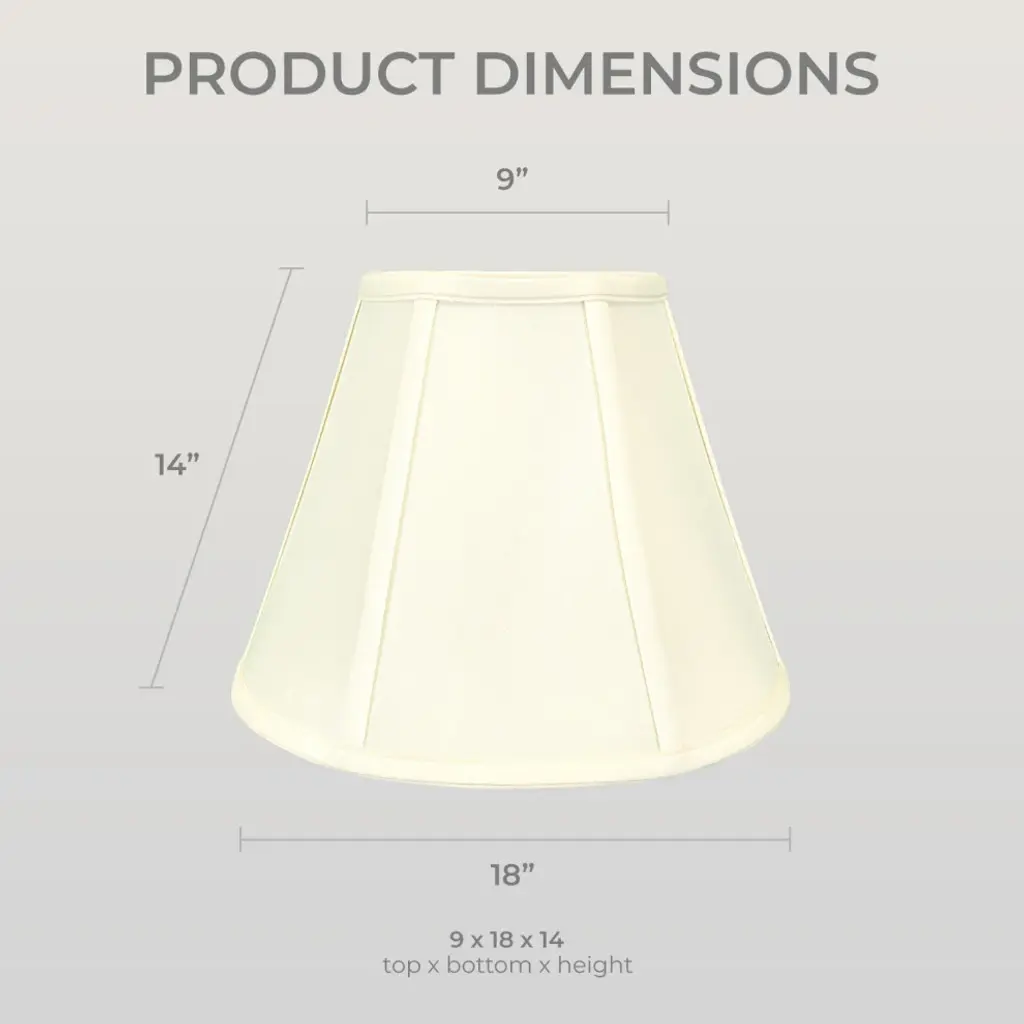 The Deep Empire Basic Lamp Shade is part of the Royal Designs, Inc. Timeless Basic Shade Collection and is a traditional yet stunning way to finish the look of your lamp. Our fancy lampshade makes a subtle statement and will turn your floor lamp or table lamp into a talking piece. We have decades of experience in the business of lampshades and we''re proud to offer multiple product lines that exemplify handcrafted quality and value. Be sure to browse our vast collection of shades in a wide variety of distinctive shapes that will add a new level of sophistication to your lighting and home decor.Height is measured on the slant from the top to the bottom of the lamp shade''s front face.DIMENSION: Our traditional basic empire lamp shade measures 6" x 12" x 9.25" (Top Diameter x Bottom Diameter x Slant Height)DIMENSION: Our traditional basic empire lamp shade measures 8" x 14" x 11" (Top Diameter x Bottom Diameter x Slant Height)DIMENSION: Our traditional basic empire lamp shade measures 9" x 16" x 12.25" (Top Diameter x Bottom Diameter x Slant Height)DIMENSION: Our traditional basic empire lamp shade measures 9" x 18" x 14" (Top Diameter x Bottom Diameter x Slant Height)MATERIALS: Our classic lampshade is made from premium silk-type shantung fabric and sturdy off-white styrene lining.EASY TO USE: The standard spider fitter works with most lamps and is held in place by any final or cap.TRADITIONAL DESIGN: Works perfectly with floor lamps or tall table lamps with a small to medium base. Our shade will also fit in beautifully in transitional and modern home decors.APPLICATION: Use our lamp shade for table lamps, accent lamps, vintage lamps, and even candlestick lamps! The timeless design is great for any room.Specification:Brand: Royal Designs, Inc.Type: Empire Lamp ShadeMaterial: FabricShape: Empire