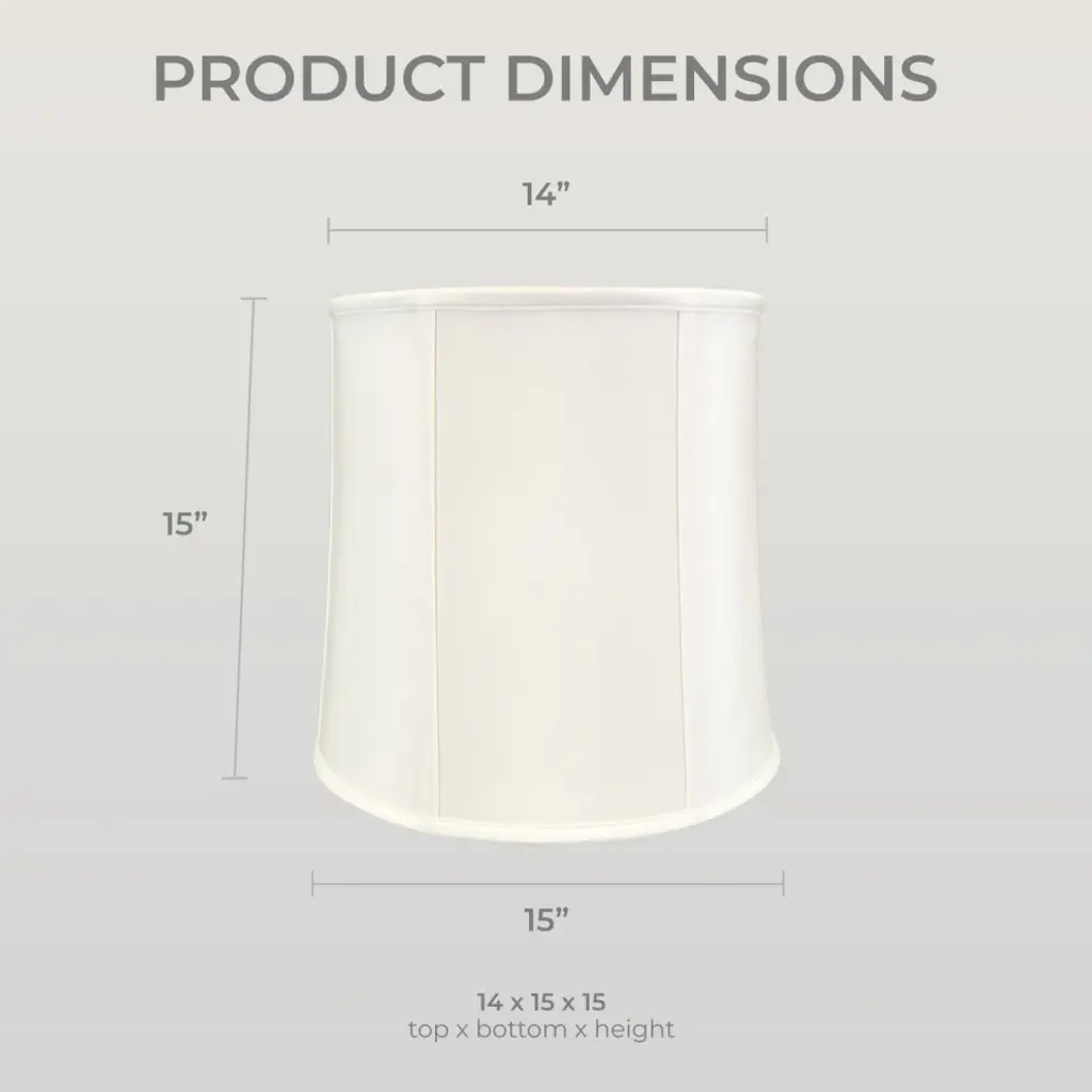 The Drum Lamp Shade is the most universal style of shade. The tall, round shape works well on most lamp bases and incorporates seamlessly into home decor. Made of tailored silk-type shantung fabric with an off-white softback lining (black shades have gold softback lining) to create a warm, soft glow. The Drum Lamp Shade is part of the Royal Designs, Inc. Timeless™ Basic Shade Collection. Royal Designs has been in the lampshade business since 1993 with our multiple shade lines that exemplify handcrafted quality and value. Height is measured by slant height from top to bottom of the lampshades"™ front face. Measurements listed as (Top Diameter x Bottom Diameter x Slant Height). Please measure your existing shade--a replacement harp may be needed for a proper fit or additional adjustment if changing the height of the shade.DIMENSION: Our traditional basic drum shade measures 9" x 10" x 10" (Top Diameter x Bottom Diamter x Slant Height)DIMENSION: Our traditional basic drum shade measures 11" x 13" x 13" (Top Diameter x Bottom Diamter x Slant Height)DIMENSION: Our traditional basic drum shade measures 13" x 14" x 14" (Top Diameter x Bottom Diamter x Slant Height)DIMENSION: Our traditional basic drum shade measures 14" x 15" x 15" (Top Diameter x Bottom Diamter x Slant Height)DIMENSION: Our traditional basic drum shade measures 15" x 16" x 16" (Top Diameter x Bottom Diamter x Slant Height)MATERIALS: Our classic lampshade is made from premium silk-type shantung fabric and sturdy off-white styrene lining.EASY TO USE: The standard spider fitter works with most lamps and is held in place by any final or cap.TRADITIONAL DESIGN: Works perfectly with floor lamps or tall table lamps with a small to medium base. Our shade will also fit in beautifully in transitional and modern home decors.APPLICATION: Use our lamp shade for table lamps, accent lamps, vintage lamps and even candlestick lamps! The timeless design is great for any room.