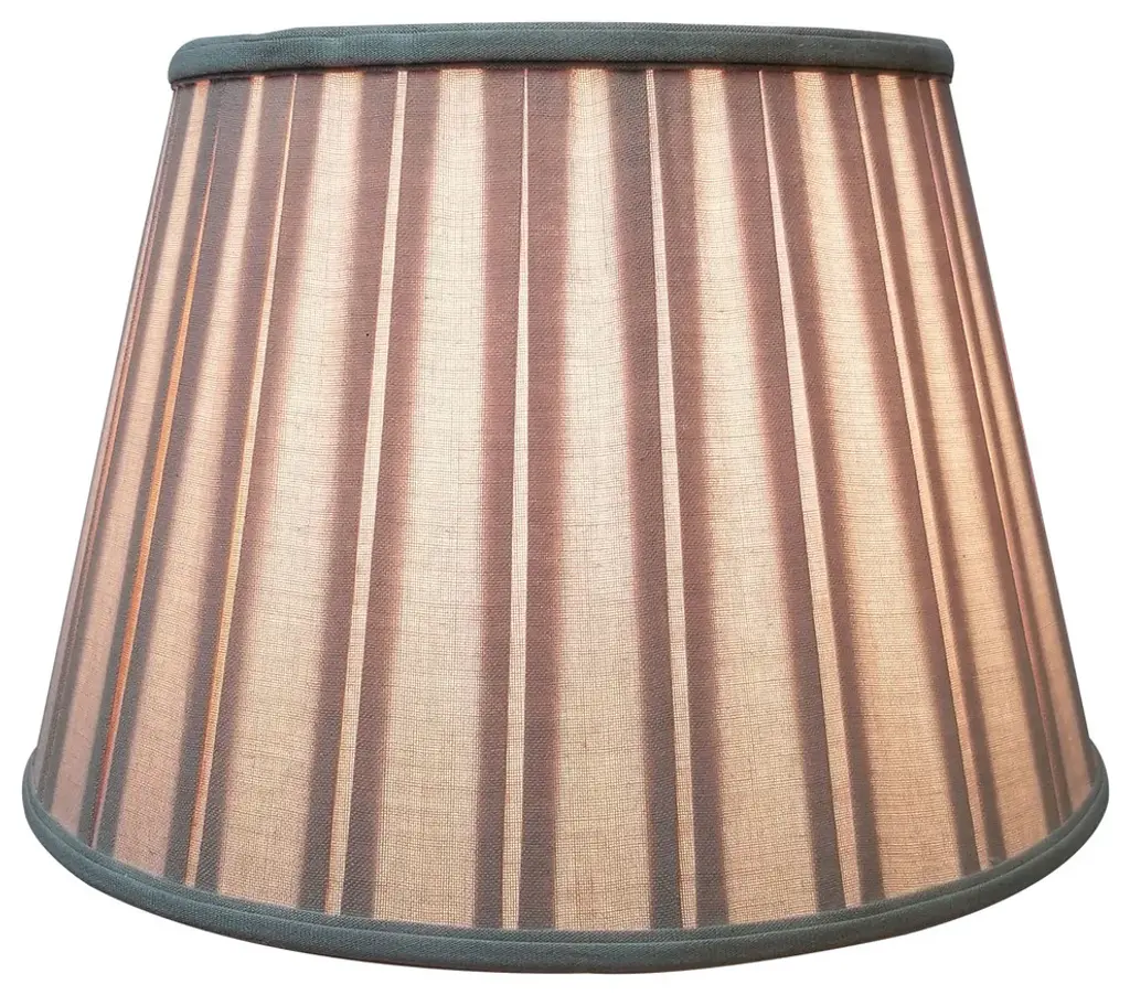 Polished and sophisticated, nothing exudes class better than our Empire English Pleat Lamp Shade. Pleats are tucked to create dimension. The overall effect is clean lines and timeless style. Comes in a wide variety of fabrics and color options. The Empire English Pleat Lamp Shade is part of the Royal Designs, Inc. Timeless™ Basic Shade Collection. Royal Designs has been in the lamp shade business since 1993 with our multiple shade lines that exemplify handcrafted quality and value. Height is measured by slant height from top to bottom of the lampshades"™ front face. Measurements listed as (TOP x BOTTOM x HEIGHT). Please measure your existing shade--a replacement harp may be needed for a proper fit or additional adjustment if changing height of shade.Exterior Fabric: Hand Tailored Silk-Type Shantung (except Linen, Mouton, Burlap & Faux Rawhide fabrics)Interior Fabric: Off-White Softback Lining (Black, Burlap & Faux Rawhide fabrics have gold lining)Washer: Standard brass-finish spider fitter, use a finial to fasten shade. (All shades with 9"+ top diameter have a V-Notch fitter for use on a 6 or 8 reflector bowl)Trim: Top and bottom trim (single or double) with vertical pipingFrame: Heavy grade rust resistant metal frameBulb: Suggested maximum wattage is 150-watt for most sizes Height is measured by slant height from top to bottom of the lampshades front facePlease measure your existing shade--a replacement harp may be needed for a proper fit or additional adjustment if changing height of shade