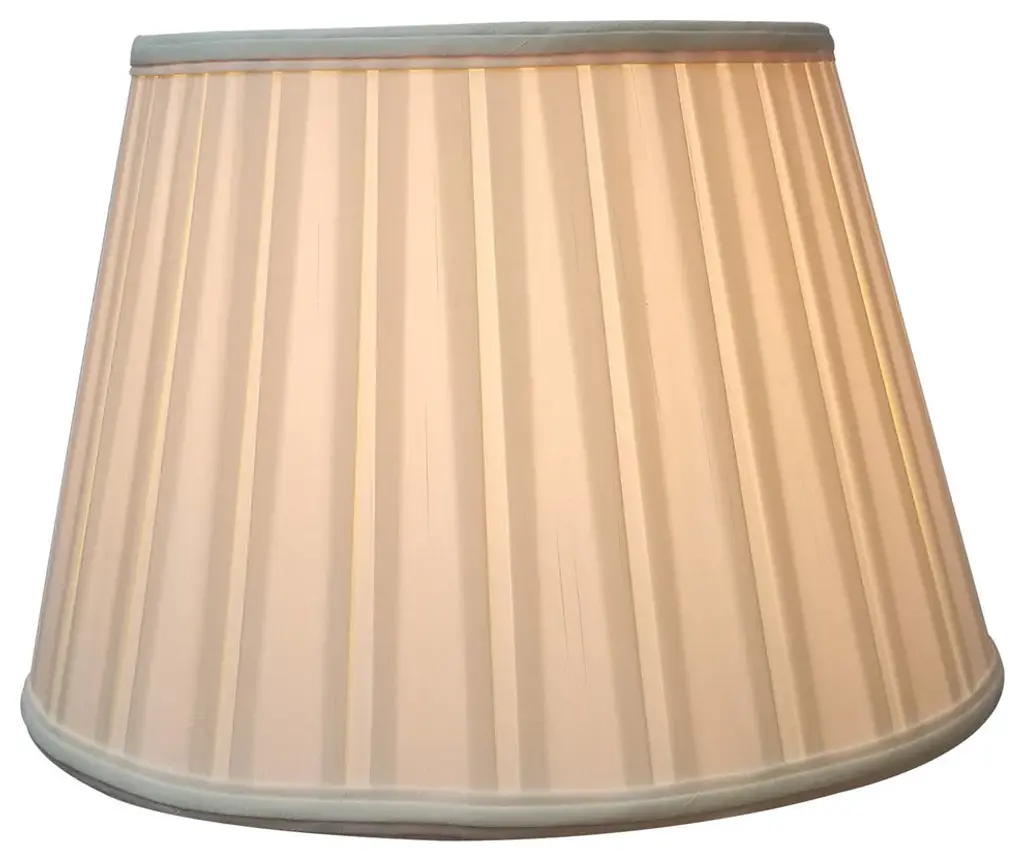 Polished and sophisticated, nothing exudes class better than our Empire English Pleat Lamp Shade. Pleats are tucked to create dimension. The overall effect is clean lines and timeless style. Comes in a wide variety of fabrics and color options. The Empire English Pleat Lamp Shade is part of the Royal Designs, Inc. Timeless™ Basic Shade Collection. Royal Designs has been in the lamp shade business since 1993 with our multiple shade lines that exemplify handcrafted quality and value. Height is measured by slant height from top to bottom of the lampshades"™ front face. Measurements listed as (TOP x BOTTOM x HEIGHT). Please measure your existing shade--a replacement harp may be needed for a proper fit or additional adjustment if changing height of shade.Exterior Fabric: Hand Tailored Silk-Type Shantung (except Linen, Mouton, Burlap & Faux Rawhide fabrics)Interior Fabric: Off-White Softback Lining (Black, Burlap & Faux Rawhide fabrics have gold lining)Washer: Standard brass-finish spider fitter, use a finial to fasten shade. (All shades with 9"+ top diameter have a V-Notch fitter for use on a 6 or 8 reflector bowl)Trim: Top and bottom trim (single or double) with vertical pipingFrame: Heavy grade rust resistant metal frameBulb: Suggested maximum wattage is 150-watt for most sizes Height is measured by slant height from top to bottom of the lampshades front facePlease measure your existing shade--a replacement harp may be needed for a proper fit or additional adjustment if changing height of shade