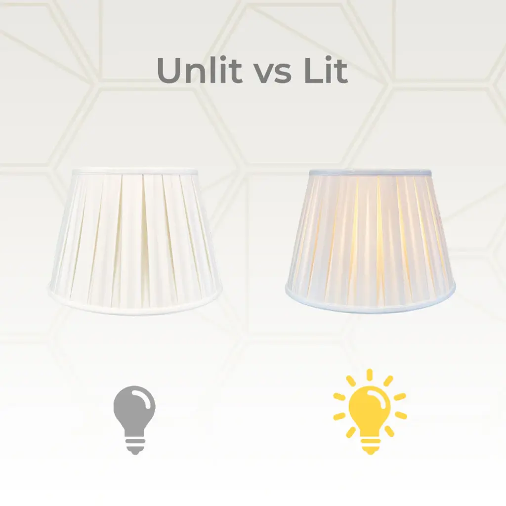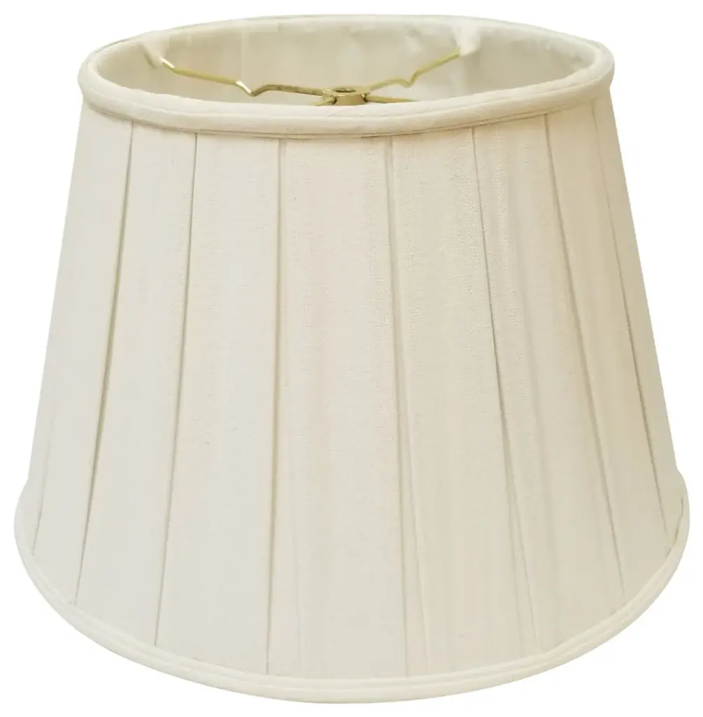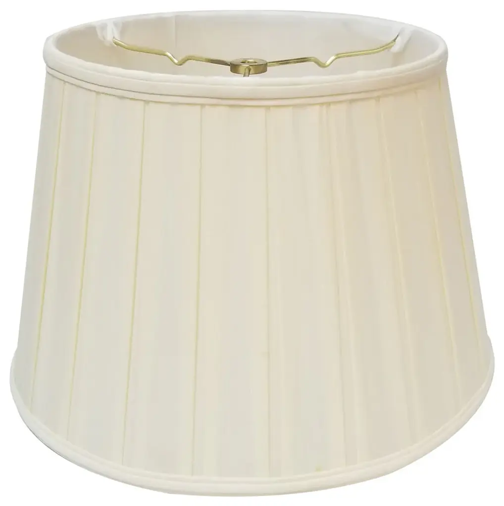 The Empire English Pleat Lamp Shade is a part of Royal Designs, Inc. Regal™ Basic Shade Collection. A classic lampshade with pleats, this shade is a traditional shape and style that will add sophistication to any space. This shade comes in a variety of colors and sizes. Perfect for updating or repairing an antique or cherished home lamp. Royal Designs has been in the lampshade business since 1993 with its multiple shade lines that exemplify handcrafted quality and value. Height is measured by slant height from top to bottom of the lampshades"™ front face. Measurements listed as (Top Diameter x Bottom Diameter x Slant Height). Please measure your existing shade--a replacement harp may be needed for a proper fit or additional adjustment if changing the height of the shade.DIMENSION: This English pleat empire shade measures 10" x 14.5" x 10" (Top Diameter x Bottom Diameter x Slant Height)DIMENSION: This English pleat empire shade measures 10.5" x 16" x 11" (Top Diameter x Bottom Diameter x Slant Height)DIMENSION: This English pleat empire shade measures 11" x 18" x 12" (Top Diameter x Bottom Diameter x Slant Height)MATERIALS: Our classic lampshade is made from premium silk-type shantung fabric and sturdy off-white styrene lining.EASY TO USE: The standard spider fitter works with most lamps and is held in place by any final or cap.TRADITIONAL DESIGN: Works perfectly with floor lamps or tall table lamps with a small to medium base. Our shade will also fit in beautifully in transitional and modern home decors.APPLICATION: Use our lamp shade for table lamps, accent lamps, vintage lamps, and even candlestick lamps! The timeless design is great for any room.