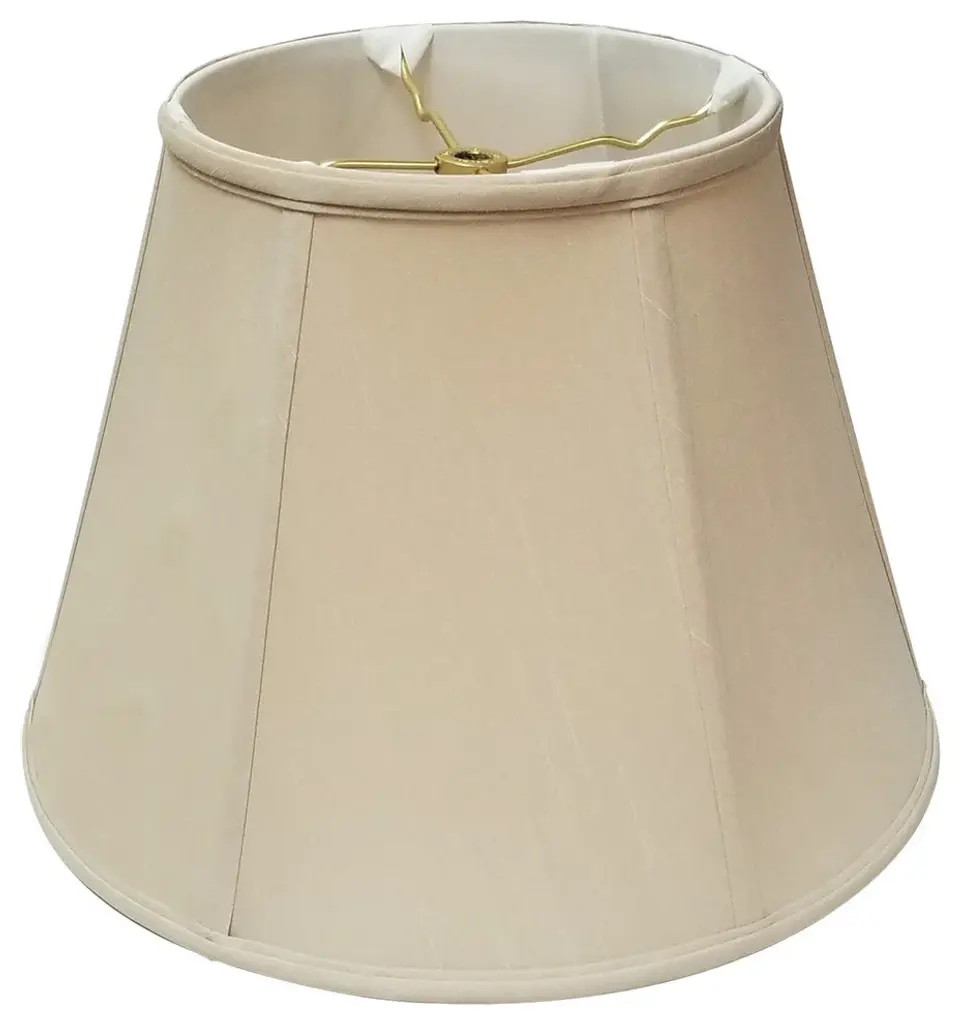 This Deep Empire Basic Lampshade is a part of Royal Designs, Inc. Timeless Basic Shade Collection and is perfect for anyone who is looking for a traditional yet stunning lampshade. Royal Designs has been in the lampshade business since 1993 with their multiple shade lines that exemplify handcrafted quality and value. Exterior Fabric: Hand Tailored Silk-Type Shantung (except Linen, Mouton, Burlap & Faux Rawhide fabrics) Interior Fabric: Off-White softback lining (Black, Burlap & Faux Rawhide fabrics have gold lining) ROUND CLIP (RC) Fitter designed to fit over a standard edison bulb base. Suggested maximum wattage is 60-watt bulb. Frame: Heavy grade rust resistant metal frame Bulb: Suggested maximum wattage is 150-watt for most sizes (clip on shade max 60W) Height is measured by slant height from top to bottom of the lampshadesfront facePlease measure your existing shade--a replacement harp may be needed for a proper fit or additional adjustment if changing height of shade