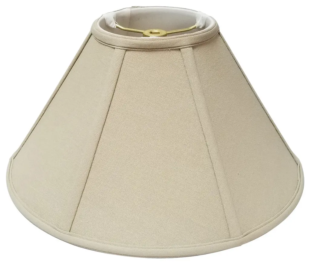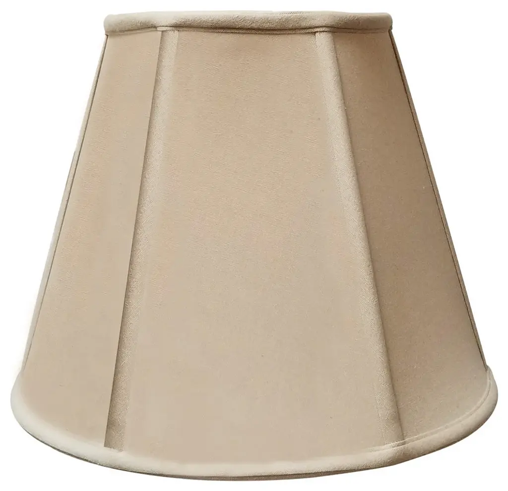 This Deep Empire Basic Lampshade is a part of Royal Designs, Inc. Timeless Basic Shade Collection and is perfect for anyone who is looking for a traditional yet stunning lampshade. Royal Designs has been in the lampshade business since 1993 with their multiple shade lines that exemplify handcrafted quality and value. Exterior Fabric: Hand Tailored Silk-Type Shantung (except Linen, Mouton, Burlap & Faux Rawhide fabrics) Interior Fabric: Off-White Softback Lining (Black, Burlap & Faux Rawhide fabrics have gold lining) Washer: Standard brass-finish spider fitter, use a finial to fasten shade. (All shades with 9 in + top diameter have a V-Notch fitter for use on a 6 in or 8 in reflector bowl) Trim: Top and bottom trim (single or double) with vertical piping Frame: Heavy grade rust resistant metal frame Bulb: Suggested maximum wattage is 150-watt for most sizesHeight is measured by slant height from top to bottom of the lampshadesfront facePlease measure your existing shade--a replacement harp may be needed for a proper fit or additional adjustment if changing height of shade
