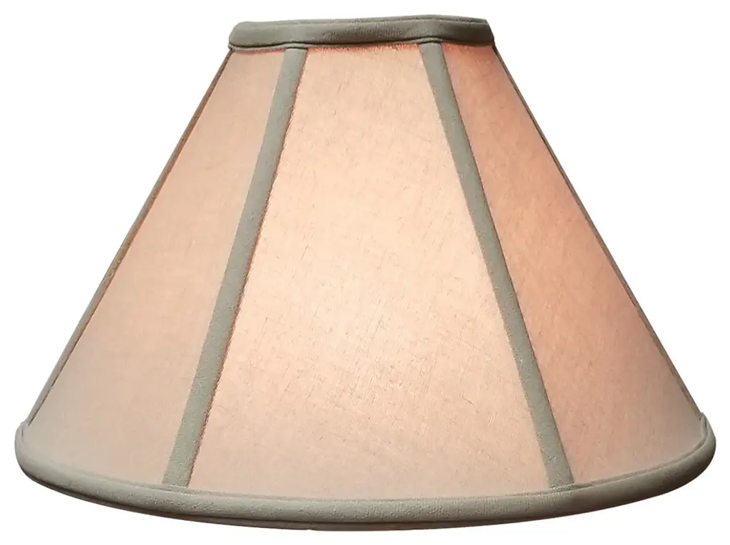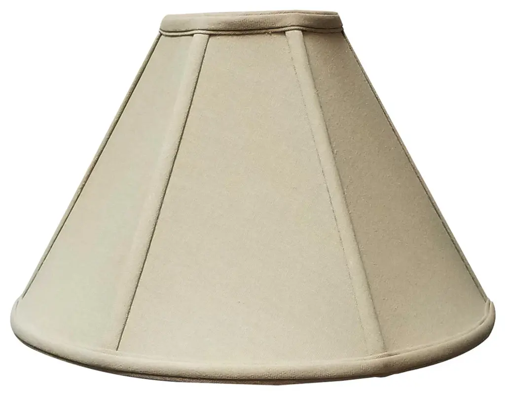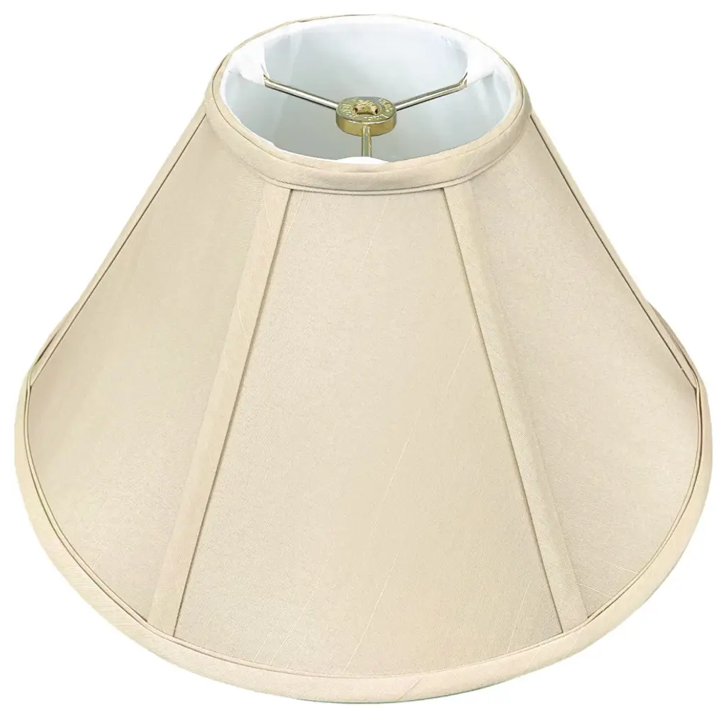 The Coolie Empire Lamp Shade gets its name from traditional Asian conical hats, which have a wide bottom and narrow top. You''ll find the Coolie style shades on large lamp bases to help create contrast and balance. This shade comes in a variety of fabrics and color options, and is perfect for creating a modern, contemporary look. The Coolie Empire Lamp Shade is part of the Royal Designs, Inc. Timeless™ Basic Shade Collection. Royal Designs has been in the lamp shade business since 1993 with our multiple shade lines that exemplify handcrafted quality and value. Height is measured by slant height from top to bottom of the lampshades"™ front face. Measurements listed as (TOP x BOTTOM x HEIGHT). Please measure your existing shade--a replacement harp may be needed for a proper fit or additional adjustment if changing height of shade. Exterior Fabric: Hand Tailored Silk-Type Shantung (except Linen, Mouton, Burlap & Faux Rawhide fabrics) Interior Fabric: Off-White Softback Lining (Black, Burlap & Faux Rawhide fabrics have gold lining) Washer: Standard brass-finish spider fitter, use a finial to fasten shade. (Shades with 9"+ top diameter have a V-Notch fitter for use with a 6" or 8" reflector bowl)Trim: Top and bottom trim (single or double) with vertical piping Frame: Heavy grade rust resistant metal frame Bulb: Suggested maximum wattage is 150-watt for most sizesHeight is measured by slant height from top to bottom of the lampshadesfront facePlease measure your existing shade--a replacement harp may be needed for a proper fit or additional adjustment if changing height of shade.