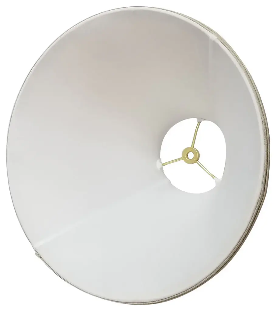 The Coolie Empire Lamp Shade gets its name from traditional Asian conical hats, which have a wide bottom and narrow top. You''ll find the Coolie style shades on large lamp bases to help create contrast and balance. This shade comes in a variety of fabrics and color options, and is perfect for creating a modern, contemporary look. The Coolie Empire Lamp Shade is part of the Royal Designs, Inc. Timeless™ Basic Shade Collection. Royal Designs has been in the lamp shade business since 1993 with our multiple shade lines that exemplify handcrafted quality and value. Height is measured by slant height from top to bottom of the lampshades"™ front face. Measurements listed as (TOP x BOTTOM x HEIGHT). Please measure your existing shade--a replacement harp may be needed for a proper fit or additional adjustment if changing height of shade. Exterior Fabric: Hand Tailored Silk-Type Shantung (except Linen, Mouton, Burlap & Faux Rawhide fabrics) Interior Fabric: Off-White Softback Lining (Black, Burlap & Faux Rawhide fabrics have gold lining) Washer: Standard brass-finish spider fitter, use a finial to fasten shade. (Shades with 9"+ top diameter have a V-Notch fitter for use with a 6" or 8" reflector bowl)Trim: Top and bottom trim (single or double) with vertical piping Frame: Heavy grade rust resistant metal frame Bulb: Suggested maximum wattage is 150-watt for most sizesHeight is measured by slant height from top to bottom of the lampshadesfront facePlease measure your existing shade--a replacement harp may be needed for a proper fit or additional adjustment if changing height of shade.
